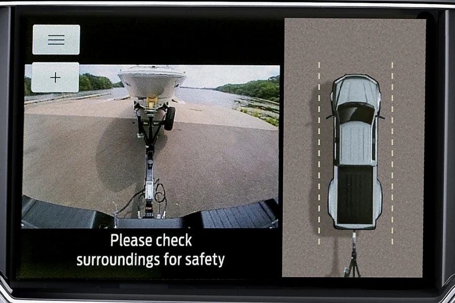 Maneuvering a big trailer has never been easier with this available system, which includes: Ultimate Trailer Tow Camera System* — Images are stitched from four cameras for a view of all sides of the truck.