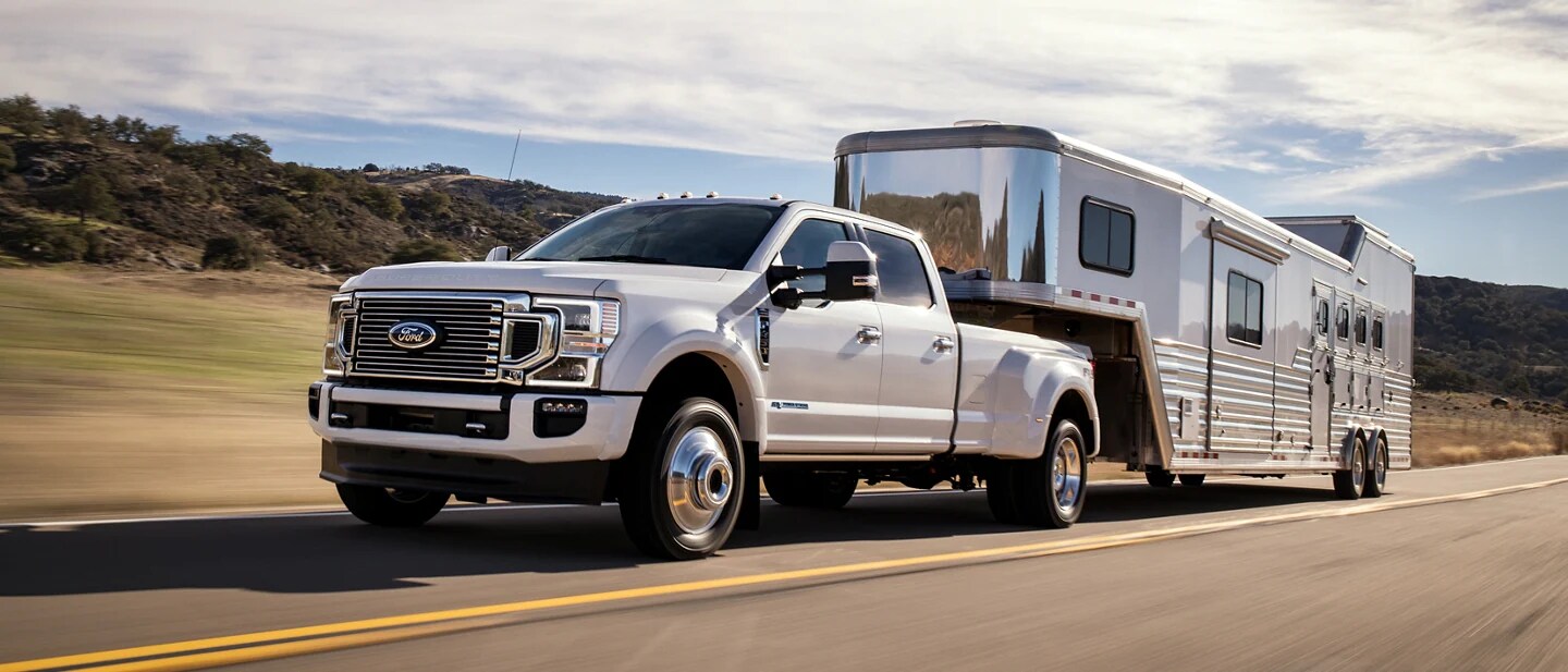 The Ford Super Duty® boasts best-in-class* maximum available payload and conventional towing, along with strong gooseneck trailer towing. But that's not all. Load up your pickup box to the max while pulling a large trailer with the best-in-class* Super Duty 45,300-lb. gross combination weight rating (GCWR).