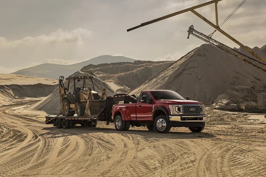 *Max conventional towing on F-450, Crew Cab, diesel. Class is Full-Size Pickups over 8,500 lbs. GVWR. Max available gas conventional tow rating of 21,000 lbs. available on F-350, DRW, Regular Cab, 4x2, 7.3L gas. Class is Full-Size Pickups over 8,500 lbs. GVWR.