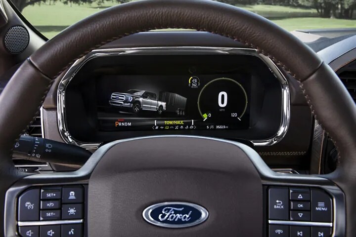 Everything looks better on the big screen. You get a front-row view to available navigation guidance, Intelligent Adaptive Cruise Control, off-road vehicle orientation and towing information. And now, Selectable Drive Modes have their own avatars and themes that display in your cluster. Each of the available modes (Normal, Eco, Sport, Tow/Haul, Slippery, Trail, Deep Snow/Sand,* Mud/Ruts* and even Rock Crawl with the FX4 Off-Road Package) creates an interior environment that matches your action. Standard on the LARIAT, King Ranch,® Platinum and Limited.