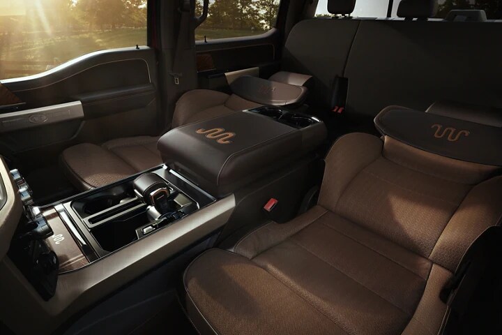 Long live the King Ranch.® Its Java interior with genuine wood-trimmed accents is a testament to the legacy of a legend. So get comfortable. The heated and ventilated leather seats* are maybe the most comfortable things you’ve ever saddled up in. Throughout the cabin, refined materials proudly display the King Ranch® logo. As if you needed the reminder.