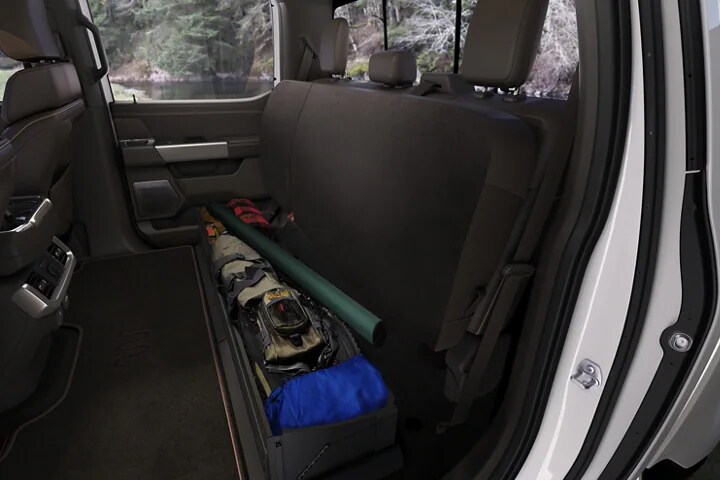 When you need things under lock and key, the available folding, lockable under-seat storage is the spot. It's integrated with the floor and perfect for storing loose items or anything you want to keep concealed and secure. The rear flat load floor also makes it easy to load and haul large items in the cab.