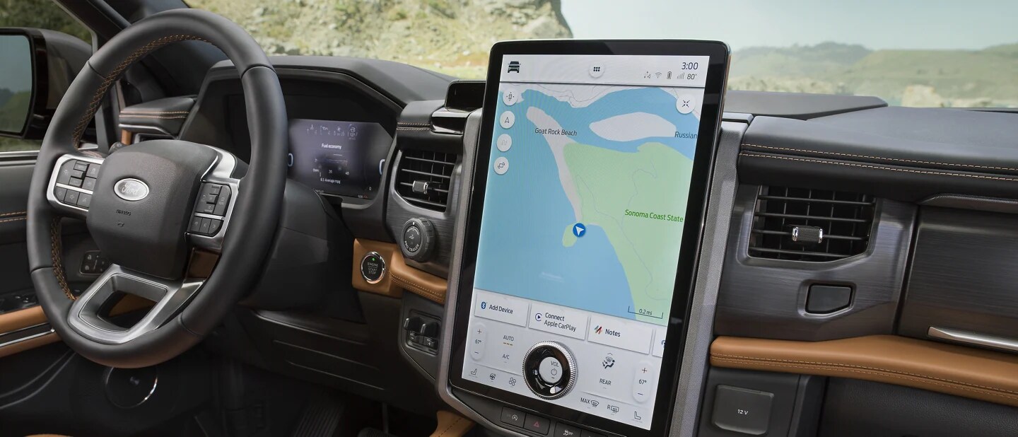 The 2024 Ford Expedition features a redesigned interface displayed on a standard 12-inch touchscreen with SYNC