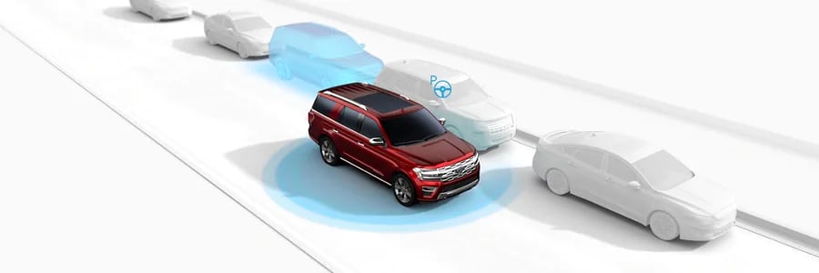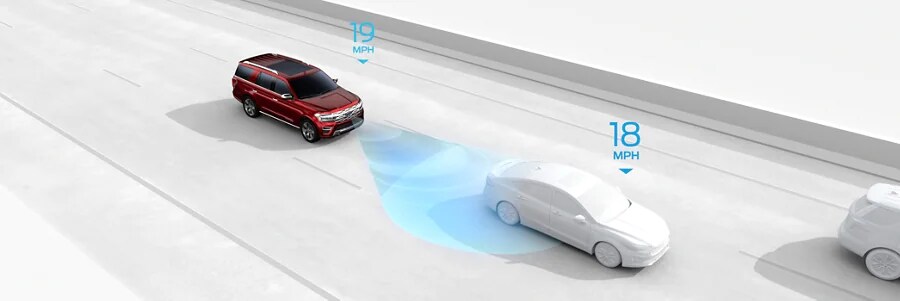 Available on select Ford vehicles is a series of Adaptive Cruise Control (ACC) features employing advanced radar and camera technology. ACC lets you set a cruising speed and distance from the vehicle ahead of you. When it slows down, you automatically do too; when traffic picks back up, you resume your preset speed and distance. Then comes ACC with Stop-and-Go, which enables you to come to a complete stop when the vehicle ahead stops. * Now add Lane Centering, which scans the lane markings to help you stay in your lane if the system detects you're drifting out of it. And that's not all. Now there's Intelligent Adaptive Cruise Control, which includes all of these features plus new Speed Sign Recognition that can automatically adjust the set speed of your vehicle to the posted speed limit.