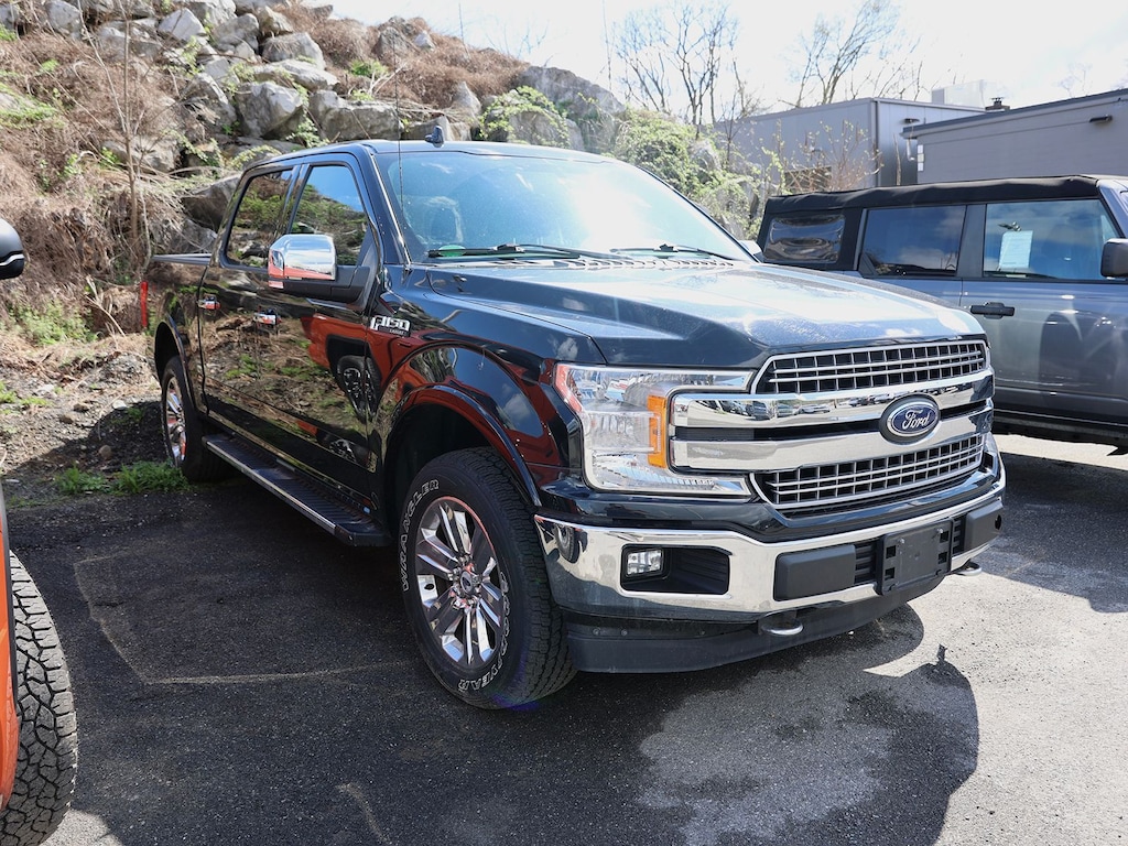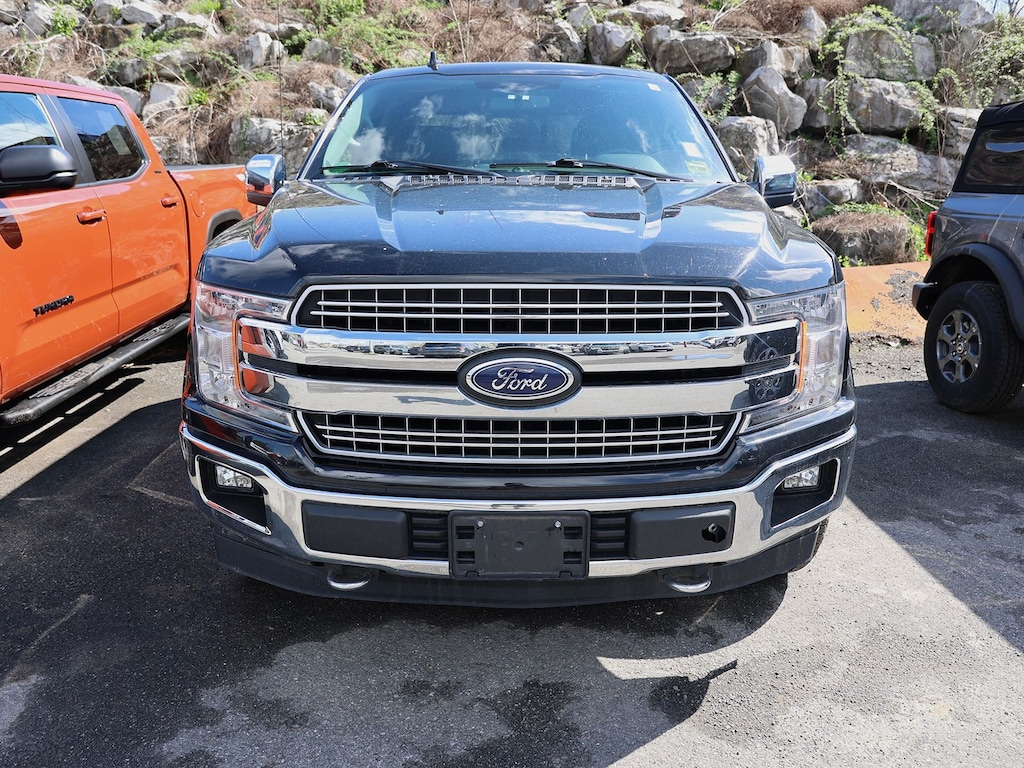 Ford Blue Advantage 2018 Ford F-150 Lariat 4WD 10-Speed Automatic 5.0L V8 Fresh Oil Change, 18" Machined-Aluminum Wheels, 3.31 Axle Ratio, 4-Wheel Disc Brakes, 7 Speakers, ABS brakes, Adjustable pedals, Air Conditioning, Alloy wheels, AM/FM radio: SiriusXM, AppLink/Apple CarPlay and Android Auto, Auto-dimming door mirrors, Auto-dimming Rear-View mirror, Automatic temperature control, Brake assist, Bumpers: chrome, CD player, Chrome 2-Bar Grille w/4 Minor Bars, Chrome Angular Step Bars, Chrome Door & Tailgate Handles w/Body-Color Bezel, Chrome Skull Caps on Exterior Mirrors, Class IV Trailer Hitch Receiver, Compass, Delay-off headlights, Driver door bin, Driver vanity mirror, Dual front impact airbags, Dual front side impact airbags, Electronic Stability Control, Emergency communication system: SYNC 3 911 Assist, Equipment Group 501A Mid, Exterior Parking Camera Rear, Front anti-roll bar, Front Center Armrest w/Storage, Front dual zone A/C, Front fog lights, Front License Plate Bracket, Front reading lights, Front wheel independent suspension, Fully automatic headlights, GVWR: 7,050 lbs Payload Package, Heated door mirrors, Heated front seats, Illuminated entry, Lariat Chrome Appearance Package, Leather-Trimmed 40/20/40 Front Seat, Low tire pressure warning, Memory seat, Occupant sensing airbag, Outside temperature display, Overhead airbag, Overhead console, Panic alarm, Passenger door bin, Passenger vanity mirror, Pedal memory, Power door mirrors, Power driver seat, Power passenger seat, Power steering, Power windows, Radio data system, Radio: Single-CD/SiriusXM w/7 Speakers, Rear reading lights, Rear seat center armrest, Rear step bumper, Rear window defroster, Remote keyless entry, Security system, Single-Tip Chrome Exhaust, Snow Plow Prep Package, Speed control, Speed-sensing steering, Split folding rear seat, Steering wheel mounted audio controls, SYNC 3, SYNC Connect, Tachometer, Telescoping steering wheel, Tilt steering wheel, Traction control, Trip computer, Turn signal indicator mirrors, Twin Panel Moonroof, Variably intermittent wipers, Ventilated front seats, Voice-Activated Touchscreen Navigation System, Voltmeter, Wheels: 18" Chrome-Like PVD, Wheels: 20" Chrome-Like PVD.