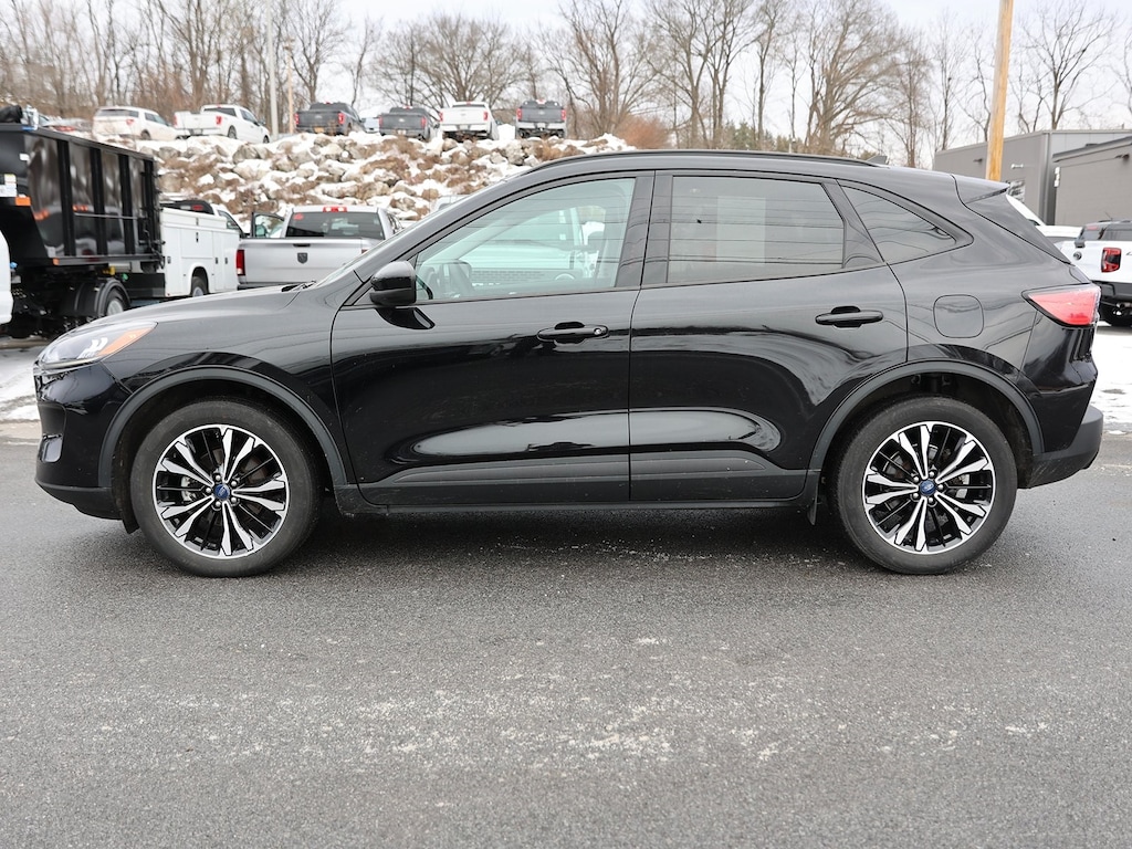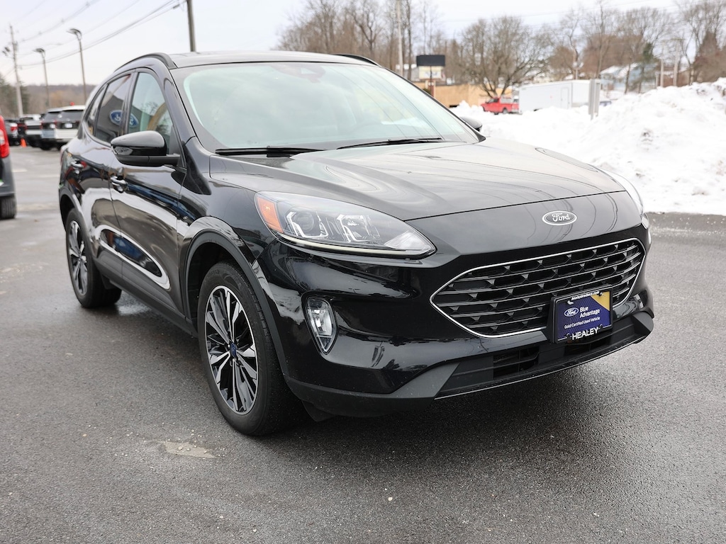 Ford Gold Certified. Agate Black Metallic 2022 Ford Escape SEL AWD 8-Speed Automatic EcoBoost 2.0L I4 GTDi DOHC Turbocharged VCT Fresh Oil Change, 18" Machined-Face Aluminum Wheels, 3.47 Axle Ratio, 4-Wheel Disc Brakes, 4G LTE Wi-Fi Hotspot Removal, 6 Speakers, ABS brakes, Air Conditioning, Alloy wheels, AM/FM radio: SiriusXM, AM/FM Stereo, Auto High-beam Headlights, Automatic temperature control, Black Roof-Rack Side Rails, Black Upper Window Molding w/Black Beltline Molding, Brake assist, Bumpers: body-color, Class II Trailer Tow Package, Compass, Delay-off headlights, Driver door bin, Driver vanity mirror, Dual front impact airbags, Dual front side impact airbags, Electronic Stability Control, Emergency communication system: SYNC 3 911 Assist, Equipment Group 302A, Exterior Parking Camera Rear, Ford Co-Pilot360 Assist+, FordPass Connect, Four wheel independent suspension, Front & Rear Black Ford Oval, Front & Rear Black Skid Plate Bumpers, Front & Rear Floor Liners w/Carpet Mats, Front & Rear Floor Mats w/Logo, Front anti-roll bar, Front Bucket Seats, Front Center Armrest, Front dual zone A/C, Front fog lights, Front reading lights, Fully automatic headlights, Gloss Black 5-Bar Upper Grille w/Chrome Surround, Gloss Black Badges & Emblems, Gloss Black Sideview Mirror Caps, Heated ActiveX Front Bucket Seats, Heated ActiveX Trimmed Front Sport Contour Bucket Seats, Heated door mirrors, Heated front seats, Heated steering wheel, Illuminated entry, Instrument Panel w/6.5" Digital Screen, Intelligent Adaptive Cruise Control w/Stop-and-Go, Knee airbag, Low tire pressure warning, Occupant sensing airbag, Outside temperature display, Overhead airbag, Overhead console, Panic alarm, Panoramic Vista Roof, Passenger door bin, Passenger vanity mirror, Power door mirrors, Power driver seat, Power Liftgate, Power steering, Power windows, Radio data system, Rear anti-roll bar, Rear reading lights, Rear seat center armrest, Rear window defroster, Rear window wiper, Remote keyless entry, SEL Stealth AWD Package, Speed control, Speed Sign Recognition, Speed-sensing steering, Speed-Sensitive Wipers, Split folding rear seat, Spoiler, Steering wheel mounted audio controls, SYNC 3 Communications & Entertainment System, Tachometer, Telescoping steering wheel, Tilt steering wheel, Traction control, Trip computer, Variably intermittent wipers, Voice-Activated Touchscreen Navigation System, Wheels: 19" Machined-Face Ebony-Painted Aluminum.