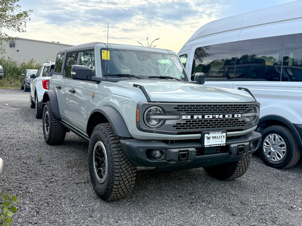 Cactus Gray 2023 Ford Bronco Badlands 4WD 10-Speed Automatic 2.7L EcoBoost V6 Dealer Detailed, Oil Change, Dealer Inspected, 4-Wheel Disc Brakes, 7 Speakers, ABS brakes, Air Conditioning, AM/FM radio: SiriusXM with 360L, AM/FM Stereo, Auto High-beam Headlights, Brake assist, Compass, Delay-off headlights, Driver door bin, Driver vanity mirror, Dual front impact airbags, Dual front side impact airbags, Electronic Stability Control, Emergency communication system: 911 Assist, Exterior Parking Camera Rear, Front anti-roll bar, Front Bucket Seats, Front Center Armrest, Front reading lights, Front wheel independent suspension, Fully automatic headlights, Heated door mirrors, Illuminated entry, Integrated roll-over protection, Low tire pressure warning, Occupant sensing airbag, Outside temperature display, Overhead airbag, Overhead console, Panic alarm, Passenger door bin, Passenger vanity mirror, Power door mirrors, Power steering, Power windows, Radio data system, Radio: 6 Speakers w/Subwoofer Delete, Remote keyless entry, Security system, SiriusXM Radio w/360L, Speed control, Split folding rear seat, Steering wheel mounted audio controls, SYNC 4, Tachometer, Telescoping steering wheel, Tilt steering wheel, Traction control, Trip computer, Variably intermittent wipers, Wheels: 17" Black High Gloss-Painted Aluminum.