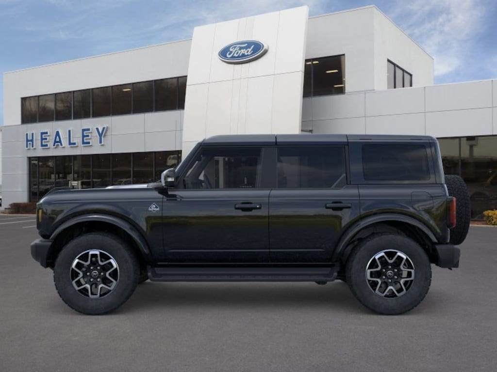 Shadow Black 2025 Ford Bronco Outer Banks 4WD 10-Speed Automatic 2.7L EcoBoost V6 Dealer Detailed, Oil Change, Dealer Inspected, 18" Bright Machined Aluminum Wheels, 3.73 Axle Ratio, 360-Degree Camera, 4-Wheel Disc Brakes, 7 Speakers, ABS brakes, Adaptive Cruise Control, Air Conditioning, Alloy wheels, AM/FM radio: SiriusXM with 360L, AM/FM Stereo, Auto High-beam Headlights, Auto-dimming Rear-View mirror, Automatic temperature control, Brake assist, Compass, Connected Navigation, Delay-off headlights, Door Storage Bags, Driver door bin, Driver vanity mirror, Dual front impact airbags, Dual front side impact airbags, Dual Tops (43B), Electronic Stability Control, Emergency communication system: 911 Assist, Equipment Group 314A Lux Package, Evasive Steering Assist, Exterior Parking Camera Rear, Front anti-roll bar, Front Bucket Seats, Front Center Armrest, Front dual zone A/C, Front fog lights, Front License Plate Bracket, Front Parking Sensors, Front reading lights, Front wheel independent suspension, Fully automatic headlights, Heated door mirrors, Heated front seats, Heated Leather-Trimmed/Vinyl Bucket Seats, Heated steering wheel, Illuminated entry, Information on Demand Panel, Integrated roll-over protection, Internet access capable: FordPass Connect, Leather Shift Knob, Low tire pressure warning, Navigation system: Connected Navigation, Occupant sensing airbag, Outside temperature display, Overhead airbag, Overhead console, Panic alarm, Passenger door bin, Passenger vanity mirror, Power door mirrors, Power driver seat, Power passenger seat, Power steering, Power windows, Radio data system, Radio: B&O Sound System by Bang & Olufsen, Rear seat center armrest, Rear-Window Defroster & Washer, Remote keyless entry, Security system, Sideview Mirrors, SiriusXM w/360L, Speed control, Split folding rear seat, Steering wheel mounted audio controls, SYNC 4, Tachometer, Telescoping steering wheel, Tilt steering wheel, Traction control, Trip computer, Universal Garage Door Opener, Upgraded Carpet Floor Mats, Variably intermittent wipers, Voltmeter.