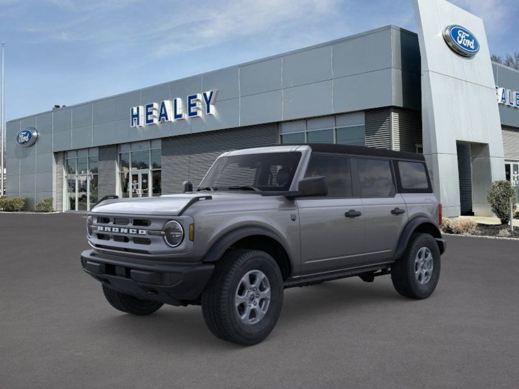Carbonized Gray Metallic 2025 Ford Bronco Big Bend 4WD 10-Speed Automatic 2.3L EcoBoost I-4 Fresh Oil Change, 2-Door Intelligent Access w/Lock/Unlock, 4-Wheel Disc Brakes, 4.46 Axle Ratio, 7 Speakers, ABS brakes, Air Conditioning, Alloy wheels, AM/FM radio: SiriusXM with 360L, AM/FM Stereo, Ambient Footwell Lighting, Auto High-Beam Headlamps, Auto High-beam Headlights, BLIS Blind Spot Information System, Brake assist, Cloth Bucket Seats, Compass, Connected Navigation, Delay-off headlights, Dr & Pass Illuminated Sliding Visor Vanity Mirrors, Driver door bin, Driver vanity mirror, Dual front impact airbags, Dual front side impact airbags, Dual Smart Charging USB Ports, Dual-Zone Electronic Automatic Temperature Control, Electronic Stability Control, Emergency communication system: 911 Assist, Equipment Group 222A Mid Package, Exterior Parking Camera Rear, Front & Rear Floor Liners, Front anti-roll bar, Front Bucket Seats, Front Center Armrest, Front License Plate Bracket, Front reading lights, Front Row Heated Seats, Front wheel independent suspension, Fully automatic headlights, Heated door mirrors, Illuminated entry, Integrated roll-over protection, Internet access capable: FordPass Connect, Lane-Keeping System, Leather Shift Knob, Low tire pressure warning, Occupant sensing airbag, Outside temperature display, Overhead airbag, Overhead console, Panic alarm, Passenger door bin, Passenger vanity mirror, Power door mirrors, Power Outlet - Back Side of Center Floor Console, Power steering, Power windows, Pre-Collision Assist w/Automatic Emergency Braking, Radio data system, Rear Parking Sensors, Rear-View Camera, Remote keyless entry, Security system, SiriusXM w/360L, Speed control, Split folding rear seat, Steering wheel mounted audio controls, SYNC 4, Tachometer, Telescoping steering wheel, Tilt steering wheel, Traction control, Trip computer, Variably intermittent wipers, Wheels: 17" Carbonized Gray-Painted Aluminum.