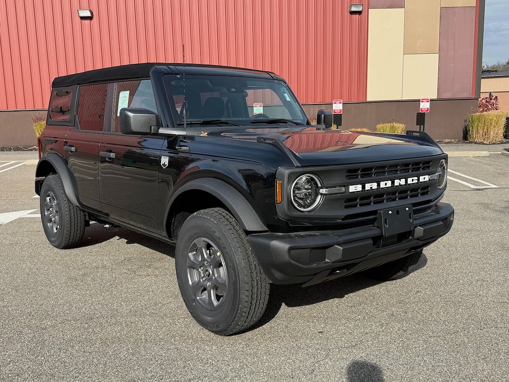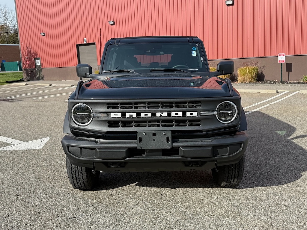 Shadow Black 2025 Ford Bronco Big Bend 4WD 10-Speed Automatic 2.3L EcoBoost I-4 Fresh Oil Change, 2-Door Intelligent Access w/Lock/Unlock, 4-Wheel Disc Brakes, 4.46 Axle Ratio, 7 Speakers, ABS brakes, Air Conditioning, Alloy wheels, AM/FM radio: SiriusXM with 360L, AM/FM Stereo, Ambient Footwell Lighting, Auto High-Beam Headlamps, Auto High-beam Headlights, BLIS Blind Spot Information System, Brake assist, Cloth Bucket Seats, Compass, Connected Navigation, Delay-off headlights, Dr & Pass Illuminated Sliding Visor Vanity Mirrors, Driver door bin, Driver vanity mirror, Dual front impact airbags, Dual front side impact airbags, Dual Smart Charging USB Ports, Dual-Zone Electronic Automatic Temperature Control, Electronic Stability Control, Emergency communication system: 911 Assist, Equipment Group 222A Mid Package, Exterior Parking Camera Rear, Front & Rear Floor Liners, Front anti-roll bar, Front Bucket Seats, Front Center Armrest, Front License Plate Bracket, Front reading lights, Front Row Heated Seats, Front wheel independent suspension, Fully automatic headlights, Heated door mirrors, Illuminated entry, Integrated roll-over protection, Lane-Keeping System, Leather Shift Knob, Low tire pressure warning, Occupant sensing airbag, Outside temperature display, Overhead airbag, Overhead console, Panic alarm, Passenger door bin, Passenger vanity mirror, Power door mirrors, Power Outlet - Back Side of Center Floor Console, Power steering, Power windows, Pre-Collision Assist w/Automatic Emergency Braking, Radio data system, Rear Parking Sensors, Rear-View Camera, Remote keyless entry, Security system, SiriusXM w/360L, Speed control, Split folding rear seat, Steering wheel mounted audio controls, SYNC 4, Tachometer, Telescoping steering wheel, Tilt steering wheel, Traction control, Trip computer, Variably intermittent wipers, Wheels: 17" Carbonized Gray-Painted Aluminum.