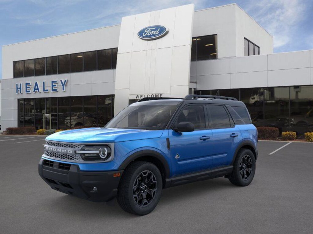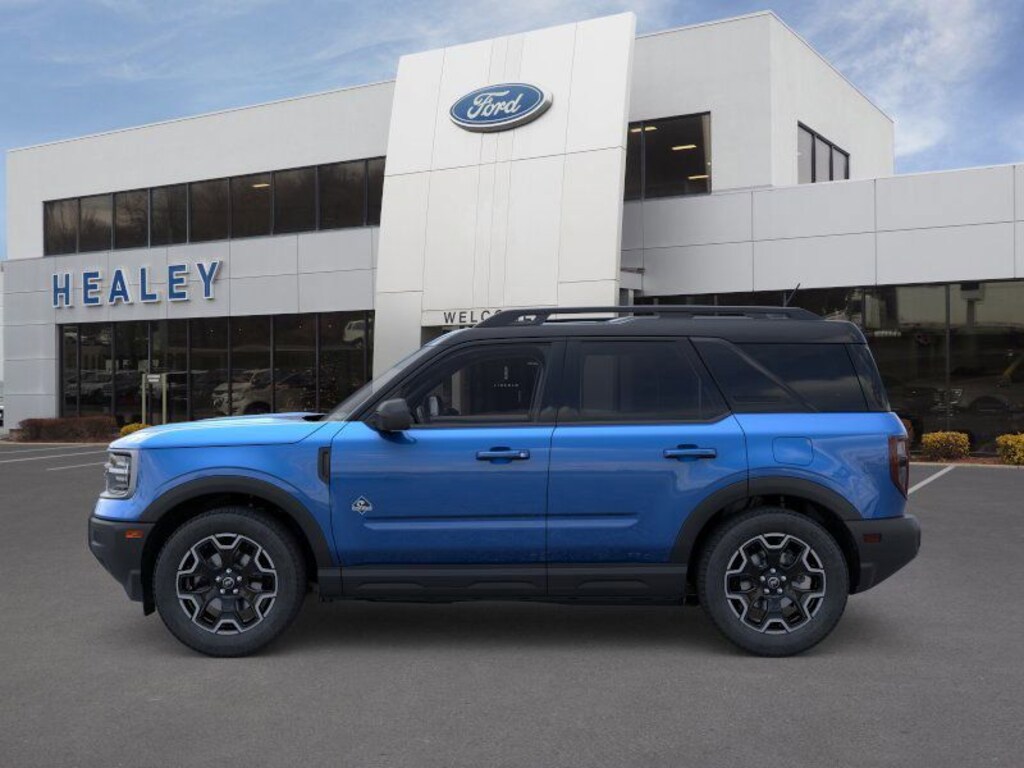 Velocity Blue Metallic 2025 Ford Bronco Sport Outer Banks 4WD 8-Speed Automatic 1.5L EcoBoost Dealer Detailed, Oil Change, Dealer Inspected, 4-Wheel Disc Brakes, 6 Speakers, ABS brakes, Air Conditioning, Alloy wheels, AM/FM radio: SiriusXM, AM/FM Stereo, Auto High-beam Headlights, Auto-dimming Rear-View mirror, Automatic temperature control, Brake assist, Compass, Delay-off headlights, Driver door bin, Driver vanity mirror, Dual front impact airbags, Dual front side impact airbags, Electronic Stability Control, Emergency communication system: SYNC 4 911 Assist, Equipment Group 300A, Four wheel independent suspension, Front & Rear Floor Liners w/o Carpet Mats, Front anti-roll bar, Front Bucket Seats, Front Center Armrest, Front Driver/Passenger Seat Back Map Pockets, Front dual zone A/C, Front fog lights, Front License Plate Bracket, Front reading lights, Fully automatic headlights, Garage door transmitter, Heated door mirrors, Heated front seats, Heated steering wheel, Illuminated entry, Knee airbag, Low tire pressure warning, Memory seat, Occupant sensing airbag, Outside temperature display, Overhead airbag, Overhead console, Panic alarm, Passenger door bin, Passenger vanity mirror, Power door mirrors, Power driver seat, Power passenger seat, Power steering, Power windows, Premium Trimmed Front Bucket Seats w/Ebony/Roast, Radio data system, Rain sensing wipers, Rear anti-roll bar, Rear Parking Sensors, Rear reading lights, Rear seat center armrest, Rear window defroster, Rear window wiper, Remote keyless entry, Security system, SiriusXM, Speed control, Speed-sensing steering, Speed-Sensitive Wipers, Split folding rear seat, Steering wheel mounted audio controls, SYNC 4 w/Enhanced Voice Recognition, Tachometer, Telescoping steering wheel, Tilt steering wheel, Traction control, Trip computer, Variably intermittent wipers, Wheels: 18" Ebony Black-Painted Aluminum.
