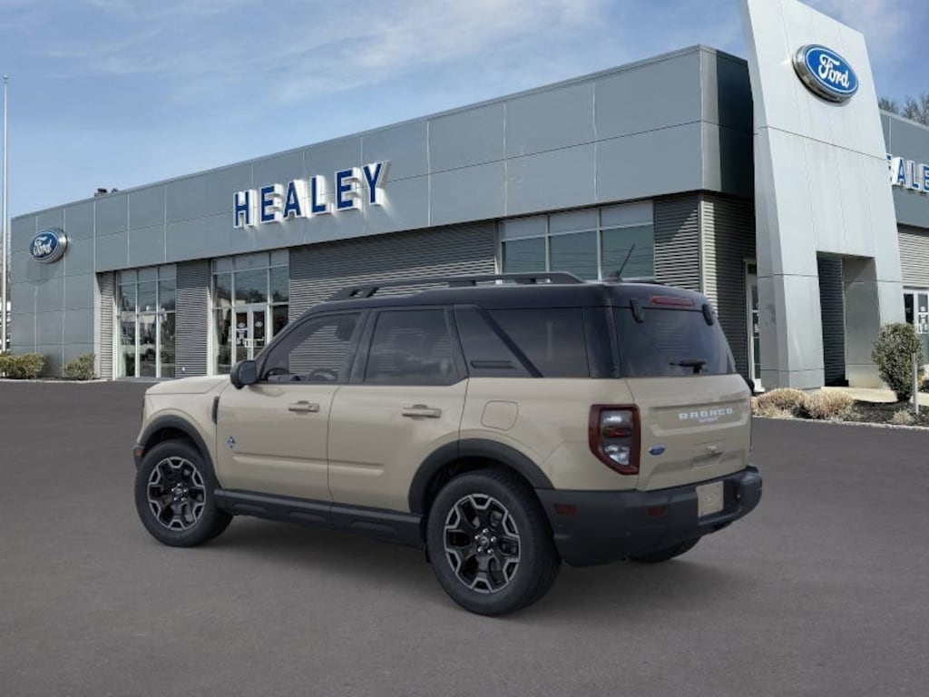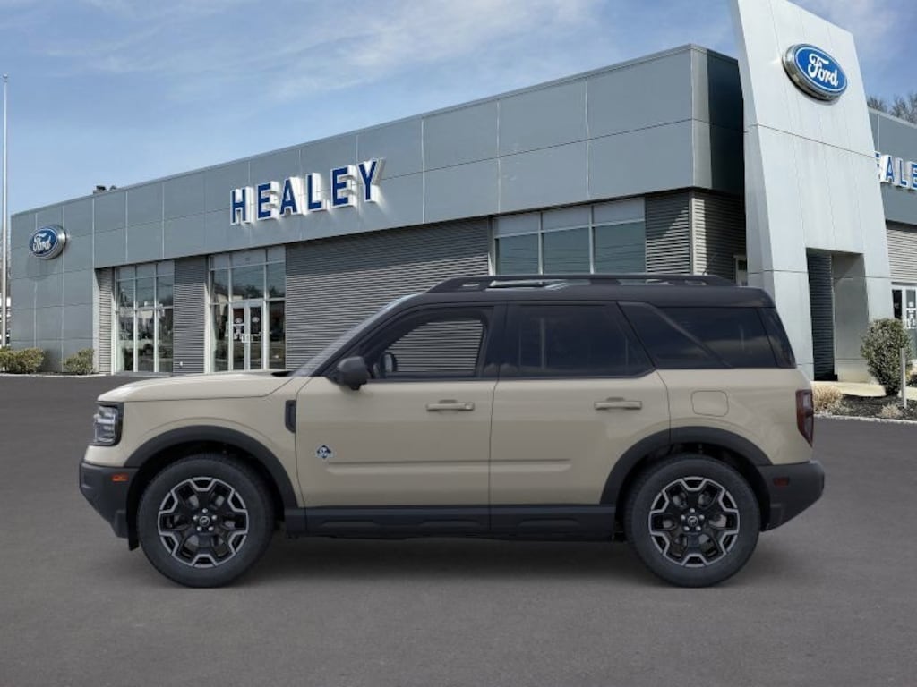 Desert Sand 2025 Ford Bronco Sport Outer Banks 4WD 8-Speed Automatic 1.5L EcoBoost Fresh Oil Change, 360-Degree Camera w/Trail & Split View, 4-Wheel Disc Brakes, 6 Speakers, ABS brakes, Air Conditioning, Alloy wheels, AM/FM radio: SiriusXM, AM/FM Stereo, Auto High-beam Headlights, Auto-dimming Rear-View mirror, Automatic temperature control, B&O Sound System by Bang & Olufsen, Brake assist, Compass, Connected Navigation, Delay-off headlights, Driver door bin, Driver vanity mirror, Dual front impact airbags, Dual front side impact airbags, Electronic Stability Control, Emergency communication system: SYNC 4 911 Assist, Equipment Group 300A, Four wheel independent suspension, Front anti-roll bar, Front Bucket Seats, Front Center Armrest, Front Driver/Passenger Seat Back Map Pockets, Front dual zone A/C, Front fog lights, Front License Plate Bracket, Front Parking Sensors, Front reading lights, Fully automatic headlights, Garage door transmitter, HD Radio, Heated door mirrors, Heated front seats, Heated steering wheel, Illuminated entry, Knee airbag, Low tire pressure warning, Memory seat, Occupant sensing airbag, Outer Banks Tech Package+, Outside temperature display, Overhead airbag, Overhead console, Panic alarm, Passenger door bin, Passenger vanity mirror, Power door mirrors, Power driver seat, Power passenger seat, Power steering, Power windows, Premium Trimmed Front Bucket Seats w/Ebony/Roast, Premium Trimmed Front Bucket Seats w/Platinum Blue, Radio data system, Rain sensing wipers, Rear anti-roll bar, Rear Parking Sensors, Rear reading lights, Rear seat center armrest, Rear window defroster, Rear window wiper, Remote keyless entry, Reverse Brake Assist, Security system, SiriusXM, Speed control, Speed-sensing steering, Speed-Sensitive Wipers, Split folding rear seat, Steering wheel mounted audio controls, SYNC 4 w/Enhanced Voice Recognition, Tachometer, Telescoping steering wheel, Tilt steering wheel, Traction control, Trip computer, Variably intermittent wipers, Wheels: 18" Ebony Black-Painted Aluminum.