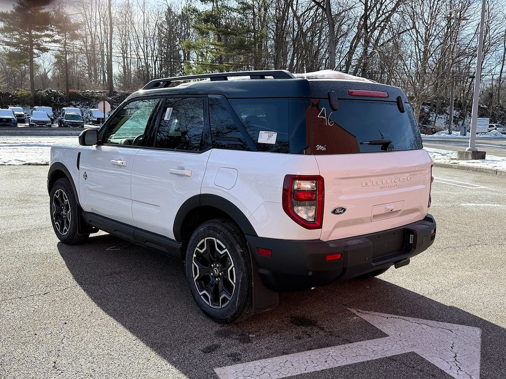 Oxford White 2025 Ford Bronco Sport Outer Banks 4WD 8-Speed Automatic 1.5L EcoBoost Fresh Oil Change, 4-Wheel Disc Brakes, 6 Speakers, ABS brakes, Air Conditioning, Alloy wheels, AM/FM radio: SiriusXM, AM/FM Stereo, Auto High-beam Headlights, Auto-dimming Rear-View mirror, Automatic temperature control, Brake assist, Compass, Delay-off headlights, Driver door bin, Driver vanity mirror, Dual front impact airbags, Dual front side impact airbags, Electronic Stability Control, Emergency communication system: SYNC 4 911 Assist, Equipment Group 300A, Four wheel independent suspension, Front & Rear Floor Liners w/o Carpet Mats, Front & Rear Splash Guards, Front anti-roll bar, Front Bucket Seats, Front Center Armrest, Front Driver/Passenger Seat Back Map Pockets, Front dual zone A/C, Front fog lights, Front License Plate Bracket, Front reading lights, Fully automatic headlights, Garage door transmitter, Heated door mirrors, Heated front seats, Heated steering wheel, Illuminated entry, Knee airbag, Low tire pressure warning, Memory seat, Occupant sensing airbag, Outside temperature display, Overhead airbag, Overhead console, Panic alarm, Passenger door bin, Passenger vanity mirror, Power door mirrors, Power driver seat, Power passenger seat, Power steering, Power windows, Premium Trimmed Front Bucket Seats w/Ebony/Roast, Radio data system, Rain sensing wipers, Rear anti-roll bar, Rear Parking Sensors, Rear reading lights, Rear seat center armrest, Rear window defroster, Rear window wiper, Remote keyless entry, Security system, SiriusXM, Speed control, Speed-sensing steering, Speed-Sensitive Wipers, Split folding rear seat, Steering wheel mounted audio controls, SYNC 4 w/Enhanced Voice Recognition, Tachometer, Telescoping steering wheel, Tilt steering wheel, Traction control, Trip computer, Variably intermittent wipers, Wheels: 18" Ebony Black-Painted Aluminum.