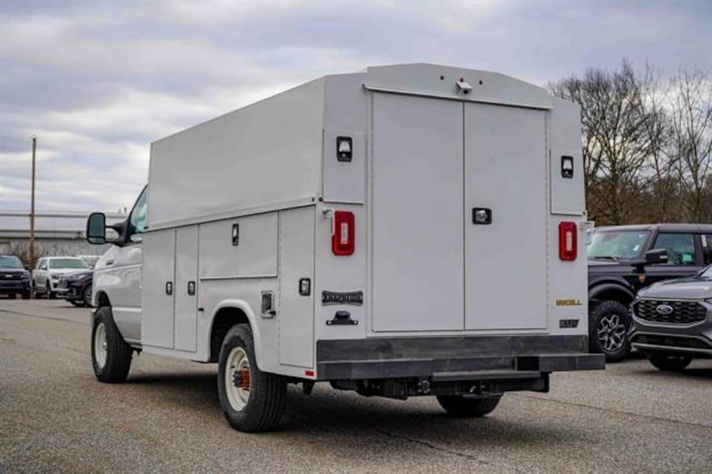 Oxford White 2025 Ford E-350SD Cutaway RWD 6-Speed Automatic with Overdrive 7.3L V8 Dealer Detailed, Oil Change, Dealer Inspected, 110V Power Inverter, 2 Speakers, 4-Wheel Disc Brakes, 4.10 Axle Ratio, ABS brakes, Air Conditioning, AM/FM radio, B-Pillar Trim Kit, Chrome Grille, Cruise Control, Driver door bin, Driver's Seat Mounted Armrest, Dual front impact airbags, Dual High Back Buckets, Electronic Stability Control, Front anti-roll bar, Front Bucket Seats, Front Chrome Bumper, Front wheel independent suspension, Fully automatic headlights, High Series Exterior Upgrade Package, License Plate Bracket, Order Code 780A, Passenger door bin, Passenger seat mounted armrest, Power Equipment Group, Power steering, Radio: AM/FM Stereo w/Clock Display & 2 Speakers, Rear View Camera Kit, Remote Keyless Entry, Tachometer, Telescoping steering wheel, Tilt steering wheel, Traction control, Variably intermittent wipers, Vinyl Bucket Seats, Vinyl Floor Covering, Voltmeter.