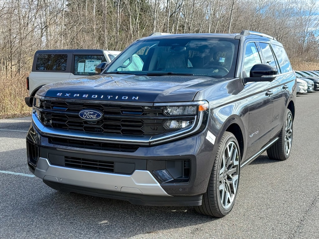 Dark Matter Gray Metallic 2025 Ford Expedition Platinum 4WD 10-Speed Automatic 3.5L V6 Dealer Detailed, Oil Change, Dealer Inspected, 10 Speakers, 2nd Row Power-Folding 40/20/40 Bench Seat, 2nd Row Power-Folding Captain's Chairs, 3.73 Axle Ratio, 3rd row seats: split-bench, 4-Wheel Disc Brakes, ABS brakes, Adjustable pedals, Air Conditioning, Alloy wheels, AM/FM radio: SiriusXM with 360L, Apple CarPlay/Android Auto, Auto High-beam Headlights, Auto-dimming door mirrors, Auto-dimming Rear-View mirror, Automatic temperature control, Black Headlamp Bezel w/Satin Trim Applique, BlueCruise Equipped (1-Year Plan), Brake assist, Bumpers: body-color, Carbon Black Front Bumper w/Lit Grille Bar, Compass, Continuous Control Damping Suspension, Delay-off headlights, Driver door bin, Driver vanity mirror, Driver's Package, Dual front impact airbags, Dual front side impact airbags, Electronic Stability Control, Emergency communication system: 911 Assist, Engine Sound Enhancer, Equipment Group 600A Standard Package, Exterior Parking Camera Rear, Four wheel independent suspension, Front anti-roll bar, Front Bucket Seats, Front Center Armrest, Front Door Scuff Plates w/Met Insert & Bright Rear, Front dual zone A/C, Front License Plate Bracket, Front reading lights, Fully automatic headlights, Garage door transmitter, Genuine wood dashboard insert, Genuine wood door panel insert, Heated & Ventilated Leather Front Captain's Chairs, Heated door mirrors, Heated front seats, Heated rear seats, Heated steering wheel, High Flow Exhaust System, Illuminated entry, Leather steering wheel, Low tire pressure warning, Memory seat, Multicontour Active Motion Lthr Frnt Captains Chairs, Navigation System, Occupant sensing airbag, Outside temperature display, Overhead airbag, Overhead console, Panic alarm, Passenger door bin, Passenger vanity mirror, Pedal memory, Platinum Ultimate Interior Package, Platinum Ultimate Package, Polished Stainless Steel Beltline Molding, Power door mirrors, Power driver seat, Power moonroof: Vista Roof, Power passenger seat, Power steering, Power windows, Radio data system, Radio: B&O Sound System by Bang & Olufsen, Radio: B&O Unleashed Sound System by Bang & Olufsen, Rain sensing wipers, Rear air conditioning, Rear anti-roll bar, Rear reading lights, Rear Seat Radio Controls, Rear Side Windows Laminated Glass, Rear window defroster, Rear window wiper, Reclining 3rd row seat, Remote keyless entry, Satin Aluminum Expedition Lettering On Side & Hood, Satin Aluminum Platinum Badge On Tailgate, Security system, Signature Grille Lighting, SiriusXM w/360L, Speed control, Speed-sensing steering, Speed-Sensitive Wipers, Split folding rear seat, Spoiler, Steering wheel memory, Steering wheel mounted audio controls, Tachometer, Telescoping steering wheel, Tilt steering wheel, Traction control, Trip computer, Turn signal indicator mirrors, Variably intermittent wipers, Ventilated front seats, Voltmeter, Wheels: 20" Ebony Bright Machined Aluminum, Wheels: 24" Tarnished Dark Metallic (DISC).
