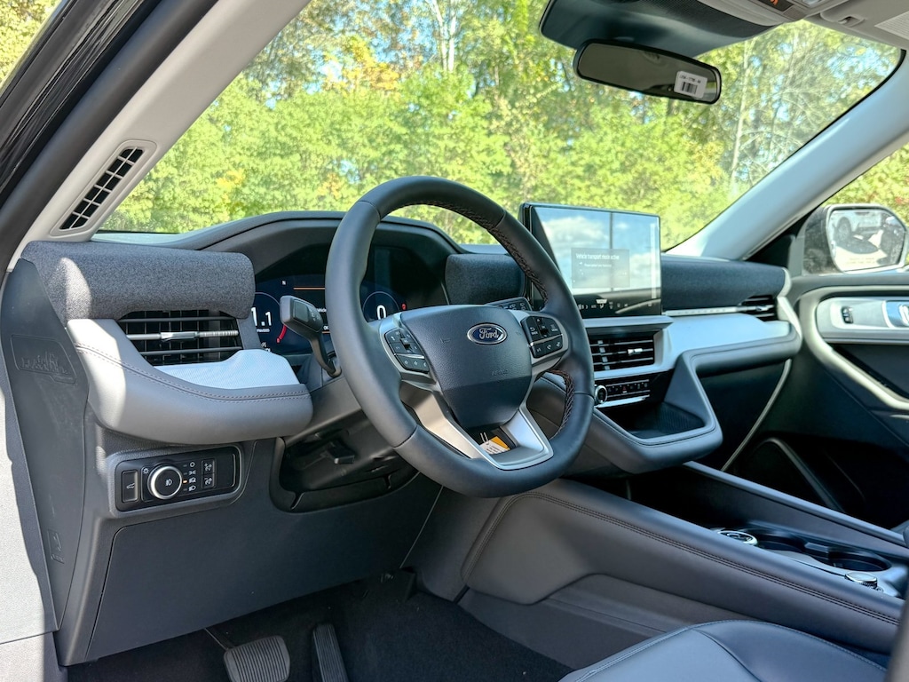 Agate Black Metallic 2025 Ford Explorer Active 4WD 10-Speed Automatic 2.3L EcoBoost I-4 Dealer Detailed, Oil Change, Dealer Inspected, 2nd Row 35/30/35 Bench w/E-Z Entry & Armrest, 3.58 Non-Limited Slip Rear Axle, 3rd row seats: bench, 4-Wheel Disc Brakes, 6 Speakers, ABS brakes, Active Comfort Package, Air Conditioning, Alloy wheels, AM/FM radio: SiriusXM with 360L, AM/FM Stereo, Apple CarPlay/Android Auto, Auto High-beam Headlights, Automatic temperature control, Brake assist, Bumpers: body-color, Compass, Delay-off headlights, Driver door bin, Driver vanity mirror, Dual front impact airbags, Dual front side impact airbags, Electronic Stability Control, Emergency communication system: 911 Assist, Equipment Group 200A Standard Package, Exterior Parking Camera Rear, Four wheel independent suspension, Front & 2nd Rows Floor Liners w/o Carpet Floor Mats, Front anti-roll bar, Front Bucket Seats, Front Center Armrest, Front dual zone A/C, Front Fascia, Front License Plate Bracket, Front reading lights, Fully automatic headlights, Heated ActiveX Seating Material Captain's Chairs, Heated door mirrors, Heated front seats, Heated Steering Wheel, Illuminated entry, Knee airbag, Leather steering wheel, Low tire pressure warning, Navigation System, Occupant sensing airbag, Outside temperature display, Overhead airbag, Overhead console, Panic alarm, Passenger door bin, Passenger vanity mirror, Power door mirrors, Power driver seat, Power Liftgate, Power passenger seat, Power steering, Power windows, Rear air conditioning, Rear anti-roll bar, Rear reading lights, Rear window defroster, Rear window wiper, Remote keyless entry, Remote Start System, Second Row HVAC Controls, Security system, Speed control, Speed-sensing steering, Speed-Sensitive Wipers, Split folding rear seat, Spoiler, Steering wheel mounted audio controls, Tachometer, Telescoping steering wheel, Tilt steering wheel, Traction control, Trip computer, Unique Heated Cloth Captain's Chairs, Universal Garage Door Opener (UGDO), Variably intermittent wipers, Wheels: 18" Sparkle Silver-Painted Aluminum, Wheels: 20" Luster Nickel-Painted Aluminum.