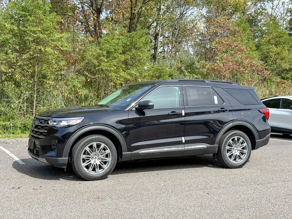 Agate Black Metallic 2025 Ford Explorer Active 4WD 10-Speed Automatic 2.3L EcoBoost I-4 Dealer Detailed, Oil Change, Dealer Inspected, 3.58 Non-Limited Slip Rear Axle, 3rd row seats: bench, 4-Wheel Disc Brakes, 6 Speakers, ABS brakes, Active Comfort Package, Air Conditioning, Alloy wheels, AM/FM radio: SiriusXM with 360L, AM/FM Stereo, Apple CarPlay/Android Auto, Auto High-beam Headlights, Automatic temperature control, Brake assist, Bumpers: body-color, Compass, Delay-off headlights, Driver door bin, Driver vanity mirror, Dual front impact airbags, Dual front side impact airbags, Electronic Stability Control, Emergency communication system: 911 Assist, Equipment Group 200A Standard Package, Exterior Parking Camera Rear, Four wheel independent suspension, Front anti-roll bar, Front Bucket Seats, Front Center Armrest, Front dual zone A/C, Front Fascia, Front License Plate Bracket, Front reading lights, Fully automatic headlights, Heated ActiveX Seating Material Captain's Chairs, Heated door mirrors, Heated front seats, Heated Steering Wheel, Illuminated entry, Knee airbag, Leather steering wheel, Low tire pressure warning, Navigation System, Occupant sensing airbag, Outside temperature display, Overhead airbag, Overhead console, Panic alarm, Passenger door bin, Passenger vanity mirror, Power door mirrors, Power driver seat, Power Liftgate, Power passenger seat, Power steering, Power windows, Rear air conditioning, Rear anti-roll bar, Rear reading lights, Rear window defroster, Rear window wiper, Remote keyless entry, Remote Start System, Second Row HVAC Controls, Security system, Speed control, Speed-sensing steering, Speed-Sensitive Wipers, Split folding rear seat, Spoiler, Steering wheel mounted audio controls, Tachometer, Telescoping steering wheel, Tilt steering wheel, Traction control, Trip computer, Unique Heated Cloth Captain's Chairs, Universal Garage Door Opener (UGDO), Variably intermittent wipers, Wheels: 18" Sparkle Silver-Painted Aluminum, Wheels: 20" Luster Nickel-Painted Aluminum.