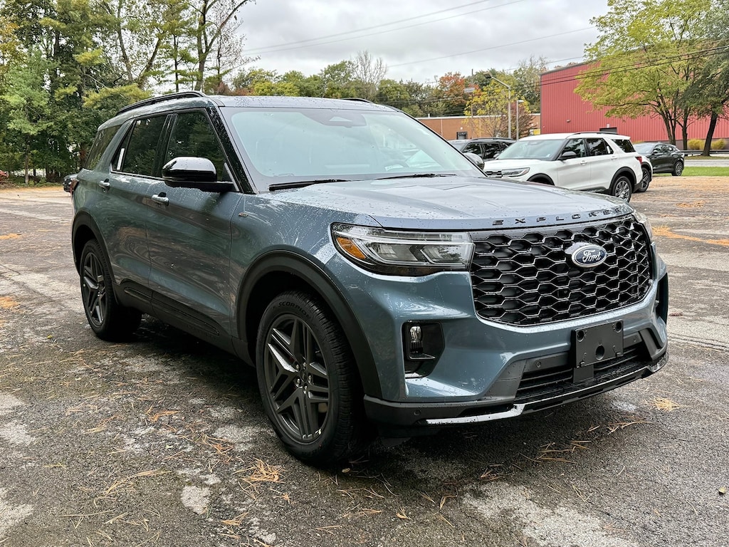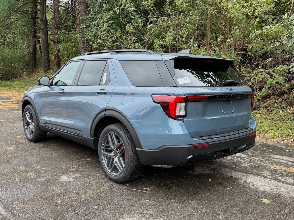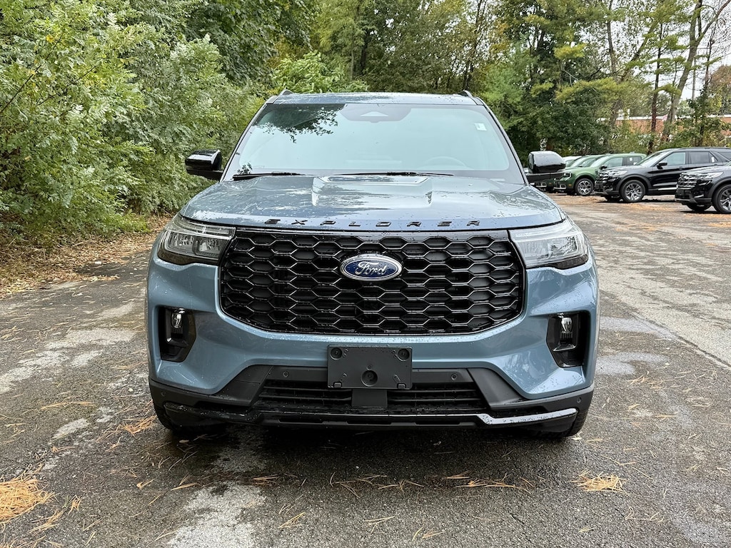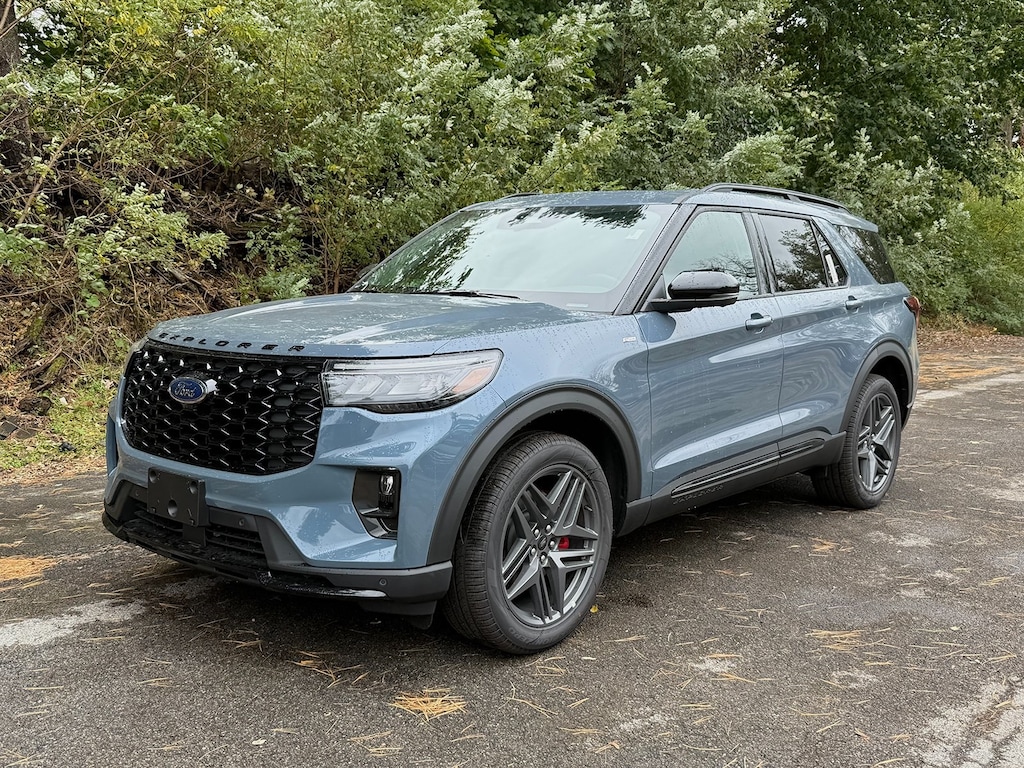 Vapor Blue Metallic 2025 Ford Explorer ST-Line 4WD 10-Speed Automatic 2.3L EcoBoost I-4 Fresh Oil Change, 10 Speakers, 110V/150W AC Power Outlet, 2nd Row Captain's Chairs w/E-Z Entry & Armrest, 2nd Row Heated Seats, 3.58 Non-Limited Slip Rear Axle, 3rd row seats: bench, 4-Wheel Disc Brakes, ABS brakes, Air Conditioning, Alloy wheels, AM/FM radio: SiriusXM with 360L, Ambient Lighting, Apple CarPlay/Android Auto, Auto High-beam Headlights, Auto-Dimming Interior Rear-View Mirror, Automatic temperature control, Brake assist, Bumpers: body-color, Compass, Delay-off headlights, Driver door bin, Driver vanity mirror, Dual front impact airbags, Dual front side impact airbags, Electronic Stability Control, Emergency communication system: 911 Assist, Equipment Group 300A Standard Package, Exterior Parking Camera Rear, Four wheel independent suspension, Front anti-roll bar, Front Bucket Seats, Front Center Armrest, Front dual zone A/C, Front fog lights, Front reading lights, Fully automatic headlights, Garage door transmitter, Heated door mirrors, Heated front seats, Heated steering wheel, Heated Unique Cloth Captain's Chairs, Illuminated entry, Knee airbag, Leather steering wheel, Low tire pressure warning, Memory Driver's Seat, Navigation System, Occupant sensing airbag, Outside temperature display, Overhead airbag, Overhead console, Panic alarm, Panoramic Vista Roof w/Power Shade, Passenger door bin, Passenger vanity mirror, Performance Brakes, Power door mirrors, Power driver seat, Power Liftgate, Power passenger seat, Power steering, Power windows, Power-Folding Sideview Mirrors w/Autofold, Premium Package, Radio: B&O Sound System by Bang & Olufsen, Rain-Sensing Wipers (Front Only), Rear air conditioning, Rear anti-roll bar, Rear reading lights, Rear window defroster, Rear window wiper, Red Painted Perf Front & Rear Brake Calipers, Remote keyless entry, SecuriCode Keyless Entry Keypad, Security system, Speed control, Speed-sensing steering, Speed-Sensitive Wipers, Split folding rear seat, Spoiler, ST-Line Street Pack, Steering wheel mounted audio controls, Tachometer, Telescoping steering wheel, Tilt steering wheel, Traction control, Trip computer, Variably intermittent wipers, Wheels: 20" Ebony-Painted Machined Aluminum, Wheels: 21" Magnetite-Painted Aluminum, Wireless Charging Pad.