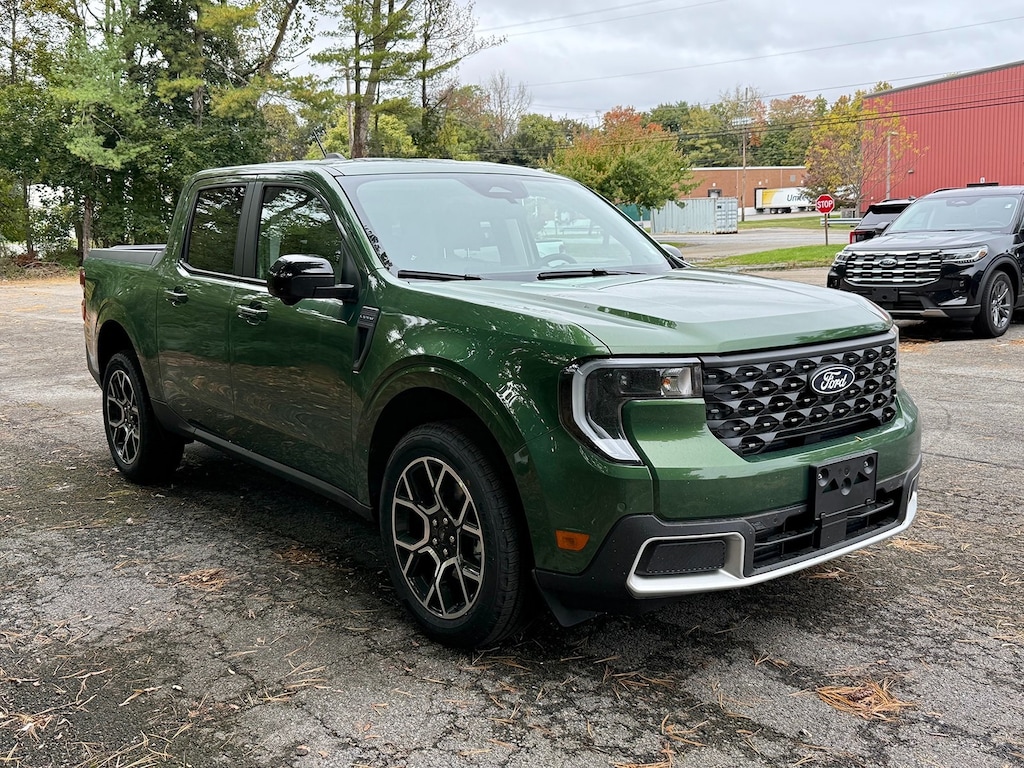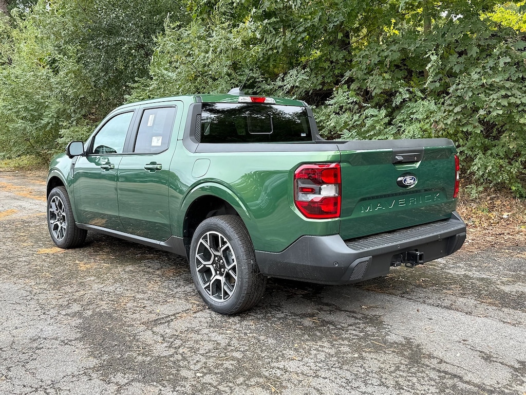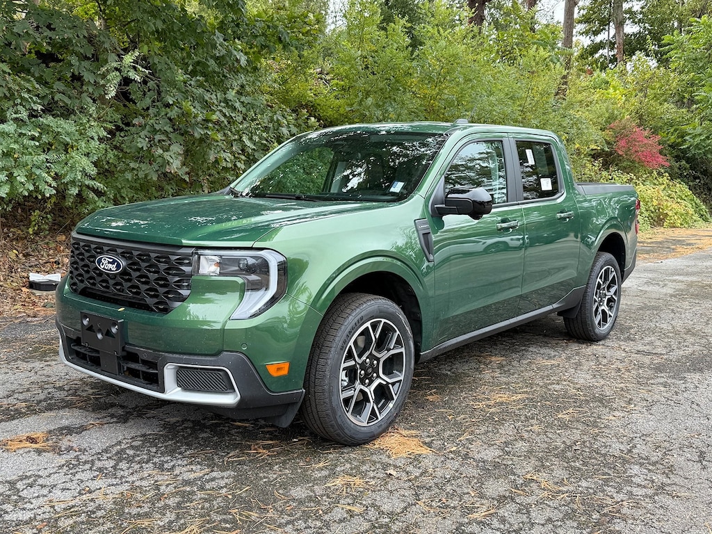 Eruption Green 2025 Ford Maverick Lariat AWD 8-Speed Automatic EcoBoost 2.0L I4 GTDi DOHC Turbocharged VCT Fresh Oil Change, 2.91 Axle Ratio, 4-Wheel Disc Brakes, 8 Speakers, ABS brakes, ActiveX Trimmed Heated Front Bucket Seats, Air Conditioning, Alloy wheels, AM/FM radio: SiriusXM with 360L, Apple CarPlay/Android Auto, Auto High-beam Headlights, Automatic temperature control, Brake assist, Bumpers: body-color, Compass, Delay-off headlights, Driver door bin, Driver vanity mirror, Dual front impact airbags, Dual front side impact airbags, Electronic Stability Control, Emergency communication system: SYNC 4 911 Assist, Equipment Group 502A, Exterior Parking Camera Rear, Four wheel independent suspension, Front anti-roll bar, Front Bucket Seats, Front Center Armrest, Front dual zone A/C, Front reading lights, Fully automatic headlights, Heated door mirrors, Heated front seats, Heated steering wheel, Illuminated entry, Knee airbag, Low tire pressure warning, Navigation system: Connected Navigation, Occupant sensing airbag, Outside temperature display, Overhead airbag, Overhead console, Panic alarm, Passenger door bin, Passenger vanity mirror, Power door mirrors, Power driver seat, Power steering, Power windows, Radio data system, Radio: B&O Sound System by Bang & Olufsen, Rear anti-roll bar, Rear seat center armrest, Rear step bumper, Remote keyless entry, Security system, SiriusXM w/360L, Speed control, Speed-sensing steering, Steering wheel mounted audio controls, SYNC 4 w/Enhanced Voice Recognition, Telescoping steering wheel, Tilt steering wheel, Traction control, Trip computer, Wheels: 19" Machined Painted Aluminum.