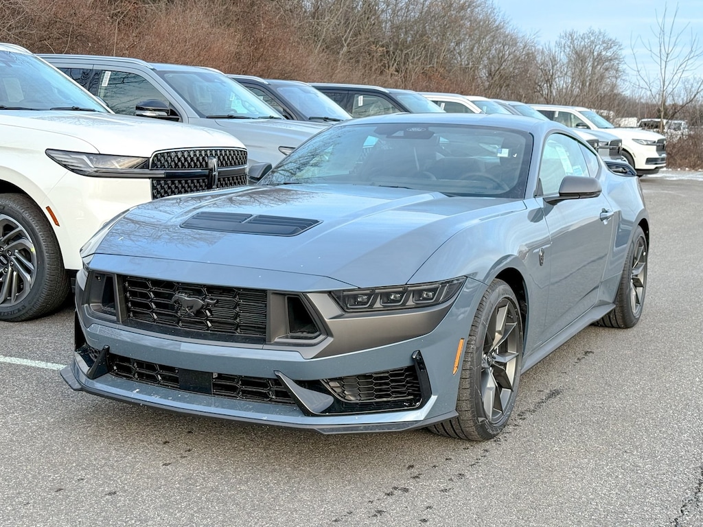 Vapor Blue Metallic 2025 Ford Mustang Dark Horse RWD Tremec 6-Speed Manual 5.0L V8 DOHC 32V Dealer Detailed, Oil Change, Dealer Inspected, 12 Speakers, 4-Wheel Disc Brakes, ABS brakes, Active Anti-Theft System, Adaptive suspension, Air Conditioning, Alloy wheels, Aluminum Foot Pedals, AM/FM radio: SiriusXM with 360L, AM/FM Stereo, Approach Detection, Auto High-beam Headlights, Auto-dimming Rear-View mirror, Automatic temperature control, B&O Sound System by Bang & Olufsen, Brake assist, Bumpers: body-color, Cloth/Vinyl Climate-Controlled Bucket Seats, Cloth/Vinyl Heated Bucket Seats, Compass, Delay-off headlights, Driver door bin, Driver Seat & Mirrors Memory, Driver vanity mirror, Dual front impact airbags, Dual front side impact airbags, Electronic Stability Control, Emergency communication system: 911 Assist, Equipment Group 700A Deluxe Package, Exterior Parking Camera Rear, Four wheel independent suspension, Front anti-roll bar, Front Bucket Seats, Front Center Armrest, Front dual zone A/C, Front reading lights, Fully automatic headlights, HD Radio, Heated front seats, Heated steering wheel, Hood Accent Stripe Delete, Illuminated entry, Internet access capable: FordPass Connect, Knee airbag, Locking Center Console, Low tire pressure warning, Navigation system: Connected Navigation, Occupant sensing airbag, Outside temperature display, Overhead airbag, Overhead console, Panic alarm, Passenger door bin, Passenger vanity mirror, Power door mirrors, Power driver seat, Power passenger seat, Power steering, Power windows, Radio data system, Rain sensing wipers, Rear anti-roll bar, Rear Parking Sensors, Rear window defroster, Remote keyless entry, Security Package, SiriusXM w/360L, Speed control, Speed-sensing steering, Speed-Sensitive Wipers, Split folding rear seat, Spoiler, Sport steering wheel, Steering wheel mounted audio controls, SYNC 4, Tachometer, Telescoping steering wheel, Tilt steering wheel, Traction control, Trip computer, Universal Garage Door Opener (UGDO), Variably intermittent wipers, Voltmeter, Wheel Locking Kit, Wheels: 19" x 9.5" Fr & 19" x 10" Rr Aluminum.