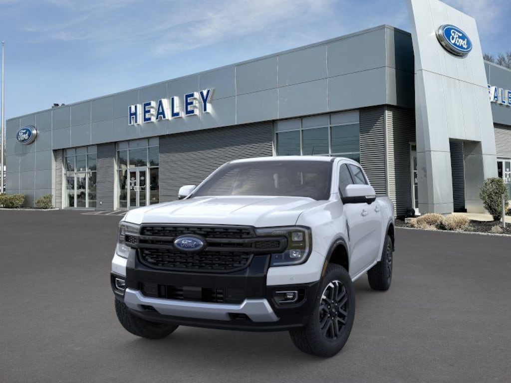 Oxford White 2025 Ford Ranger Lariat 4WD 10-Speed Automatic EcoBoost 2.3L I4 GTDi DOHC Turbocharged VCT Dealer Detailed, Oil Change, Dealer Inspected, 10 Speakers, 120V/400W In-Cab & In-Bed Power Outlets, 3.73 Axle Ratio, 4-Wheel Disc Brakes, ABS brakes, Air Conditioning, Alloy wheels, AM/FM radio: SiriusXM, Auto High-beam Headlights, Auto-dimming Rear-View mirror, Automatic temperature control, Brake assist, Compass, Convenience Package, Delay-off headlights, Driver door bin, Driver vanity mirror, Dual front impact airbags, Dual front side impact airbags, Electronic Stability Control, Emergency communication system: SYNC 4 911 Assist, Equipment Group 500A Standard, Front anti-roll bar, Front Bucket Seats, Front Center Armrest, Front dual zone A/C, Front fog lights, Front License Plate Bracket, Front reading lights, Front wheel independent suspension, Fully automatic headlights, Garage door transmitter, Gray Painted Center Bar & Grille Surround, Gray Painted Front Fascia & Rear Bumper, Heated door mirrors, Heated front seats, Heated steering wheel, Illuminated entry, Internet access capable: FordPass Connect 4G, Leather Shift Knob, Leather steering wheel, Leather-Trimmed Front Heated Bucket Seats, Low tire pressure warning, Memory seat, Navigation system: Connected Navigation, Occupant sensing airbag, Outside temperature display, Overhead airbag, Overhead console, Panic alarm, Passenger door bin, Passenger vanity mirror, Power door mirrors, Power driver seat, Power passenger seat, Power steering, Power windows, Radio: B&O Sound System by Bang & Olufsen, Rain sensing wipers, Rear reading lights, Rear seat center armrest, Rear step bumper, Rear window defroster, Remote keyless entry, Security system, SiriusXM Satellite Radio, Speed control, Speed-sensing steering, Sport Appearance Package, Sport Box Decal, Steering wheel mounted audio controls, SYNC 4A w/Connected Navigation, Telescoping steering wheel, Tilt steering wheel, Traction control, Tray Style Floor Liner w/Carpet Floor Mats, Trip computer, Turn signal indicator mirrors, Variably intermittent wipers, Voltmeter, Wheels: 18" Machined Aluminum w/Dark Pockets, Wireless Charging Pad.
