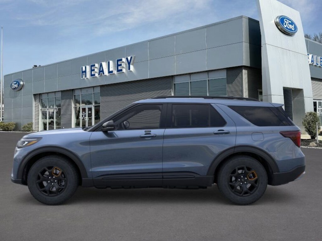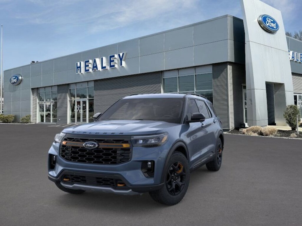 Blue 2026 Ford Explorer Tremor 4WD 10-Speed Automatic 2.3L EcoBoost I-4 Fresh Oil Change, 10 Speakers, 3rd row seats: bench, 4-Wheel Disc Brakes, ABS brakes, Air Conditioning, Alloy wheels, AM/FM radio: SiriusXM with 360L, Apple CarPlay/Android Auto, Auto High-beam Headlights, Automatic temperature control, Brake assist, Bumpers: body-color, Compass, Delay-off headlights, Driver door bin, Driver vanity mirror, Dual front impact airbags, Dual front side impact airbags, Electronic Stability Control, Emergency communication system: 911 Assist, Exterior Parking Camera Rear, Four wheel independent suspension, Front anti-roll bar, Front Bucket Seats, Front Center Armrest, Front dual zone A/C, Front fog lights, Front reading lights, Fully automatic headlights, Heated door mirrors, Heated front seats, Heated rear seats, Heated steering wheel, Heated/Ventilated Miko Captain's Chairs, Illuminated entry, Internet access capable: FordPass Connect 5G, Knee airbag, Leather steering wheel, Low tire pressure warning, Navigation System, Occupant sensing airbag, Outside temperature display, Overhead airbag, Overhead console, Panic alarm, Passenger door bin, Passenger vanity mirror, Power door mirrors, Power driver seat, Power Liftgate, Power passenger seat, Power steering, Power windows, Radio: B&O Sound System by Bang and Olufsen, Rear air conditioning, Rear anti-roll bar, Rear reading lights, Rear window defroster, Rear window wiper, Remote keyless entry, Security system, Speed control, Speed-sensing steering, Speed-Sensitive Wipers, Split folding rear seat, Spoiler, Sport steering wheel, Steering wheel mounted audio controls, Tachometer, Telescoping steering wheel, Tilt steering wheel, Traction control, Trip computer, Variably intermittent wipers, Ventilated front seats, Wheels: 18" High Gloss Black-Painted Aluminum.