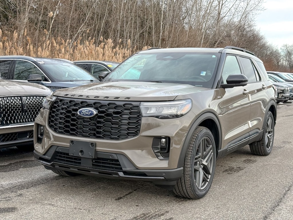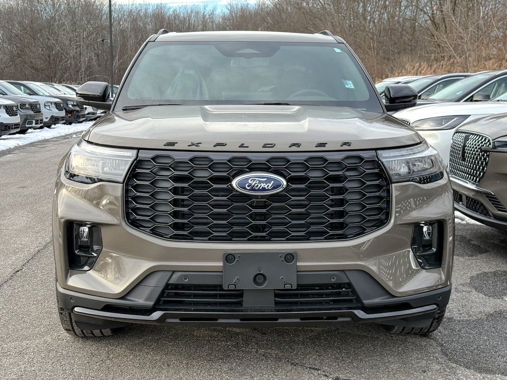 Marsh Gray 2026 Ford Explorer ST-Line 4WD 10-Speed Automatic 2.3L EcoBoost I-4 Dealer Detailed, Oil Change, Dealer Inspected, 10 Speakers, 110V/150W AC Power Outlet, 2nd Row Captain's Chairs w/E-Z Entry and Armrest, 2nd Row Heated Seats, 3rd row seats: bench, 4-Wheel Disc Brakes, ABS brakes, Air Conditioning, Alloy wheels, AM/FM radio: SiriusXM with 360L, Ambient Lighting, Apple CarPlay/Android Auto, Auto High-beam Headlights, Auto-Dimming Interior Rear-View Mirror, Automatic temperature control, Brake assist, Bumpers: body-color, Compass, Delay-off headlights, Driver door bin, Driver vanity mirror, Dual front impact airbags, Dual front side impact airbags, Electronic Stability Control, Emergency communication system: 911 Assist, Equipment Group 300A Standard Package, Exterior Parking Camera Rear, Ford Connectivity Package (one-Time Purchase - 7 Years), Four wheel independent suspension, Front and 2nd Rows Floor Liners with Carper Floor Mats, Front anti-roll bar, Front Bucket Seats, Front Center Armrest, Front dual zone A/C, Front fog lights, Front License Plate Bracket, Front reading lights, Fully automatic headlights, Garage door transmitter, Heated door mirrors, Heated front seats, Heated steering wheel, Heated Unique Cloth Captain's Chairs, Illuminated entry, Internet access capable: FordPass Connect 5G, Knee airbag, Leather steering wheel, Low tire pressure warning, Manual-Folding Sideview Mirrors, Memory Driver's Seat, Navigation System, Occupant sensing airbag, Outside temperature display, Overhead airbag, Overhead console, Panic alarm, Panoramic Fixed Glass Roof with Power Shade, Passenger door bin, Passenger vanity mirror, Performance Brakes, Power door mirrors, Power driver seat, Power Liftgate, Power passenger seat, Power steering, Power windows, Premium Package, Radio: B&O Sound System by Bang and Olufsen, Rain-Sensing Wipers (front Only), Rear air conditioning, Rear anti-roll bar, Rear reading lights, Rear window defroster, Rear window wiper, Red Painted Performance Front and Rear Brake Calipers, Remote keyless entry, Security system, Speed control, Speed-sensing steering, Speed-Sensitive Wipers, Split folding rear seat, Spoiler, ST-Line Street Pack, Steering wheel mounted audio controls, Tachometer, Telescoping steering wheel, Tilt steering wheel, Traction control, Trip computer, Variably intermittent wipers, Wheels: 20" Ebony-Painted Machined Aluminum, Wheels: 21" Magnetite-Painted Aluminum.