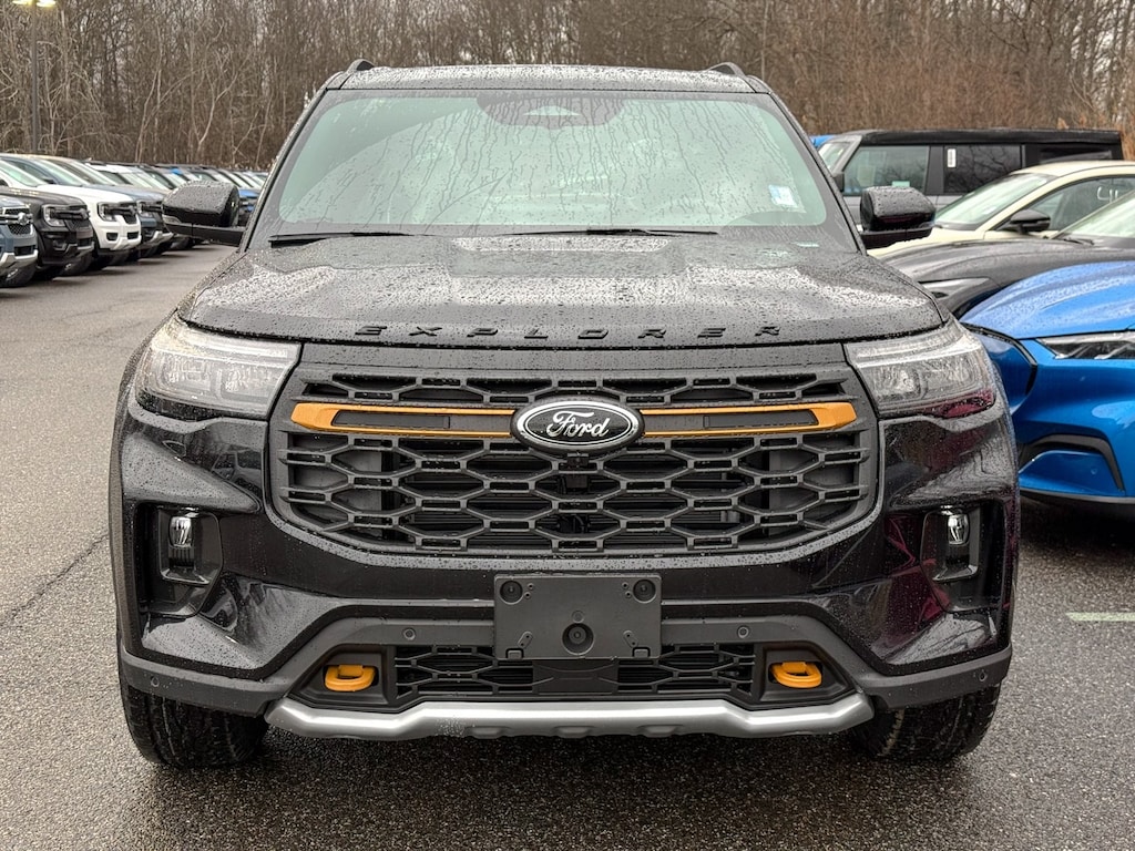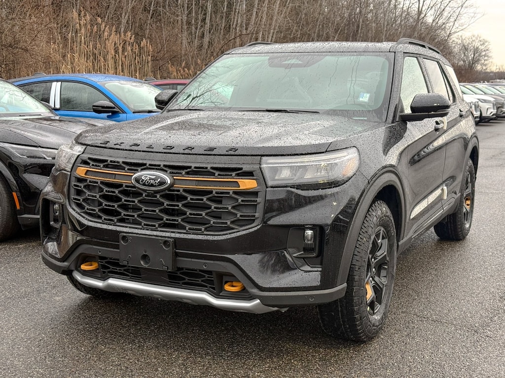 Agate Black Metallic 2026 Ford Explorer Tremor 4WD 10-Speed Automatic 3.0L EcoBoost V6 Dealer Detailed, Oil Change, Dealer Inspected, 10 Speakers, 3rd Row PowerFold Seats, 3rd row seats: bench, 4-Wheel Disc Brakes, ABS brakes, Air Conditioning, Alloy wheels, AM/FM radio: SiriusXM with 360L, Ambient Lighting, Apple CarPlay/Android Auto, Auto High-beam Headlights, Automatic temperature control, BlueCruise Hardware, Brake assist, Bumpers: body-color, Compass, Delay-off headlights, Driver door bin, Driver vanity mirror, Dual front impact airbags, Dual front side impact airbags, Electronic Stability Control, Emergency communication system: 911 Assist, Equipment Group 800A Standard Package, Exterior Parking Camera Rear, Ford Connectivity Package (one-Time Purchase - 7 Years), Four wheel independent suspension, Front anti-roll bar, Front Bucket Seats, Front Center Armrest, Front dual zone A/C, Front fog lights, Front License Plate Bracket, Front reading lights, Fully automatic headlights, Garage door transmitter, Heated door mirrors, Heated front seats, Heated rear seats, Heated steering wheel, Heated/Ventilated Miko Suede Captain's Chairs, Illuminated entry, Knee airbag, Leather steering wheel, Low tire pressure warning, Memory Driver's Seat, Multicontour Seats with Front Active Motion, Navigation System, Occupant sensing airbag, Outside temperature display, Overhead airbag, Overhead console, Panic alarm, Panoramic Fixed Glass Roof with Power Shade, Passenger door bin, Passenger vanity mirror, Power door mirrors, Power driver seat, Power Liftgate, Power passenger seat, Power steering, Power windows, Power-Folding with Autofold Side Mirrors, Radio: B&O Sound System by Bang & Olufsen, Radio: B&O Sound System by Bang and Olufsen, Rain-Sensing Wipers (front Only), Rear air conditioning, Rear anti-roll bar, Rear reading lights, Rear window defroster, Rear window wiper, Remote keyless entry, Security system, Speed control, Speed-sensing steering, Speed-Sensitive Wipers, Split folding rear seat, Spoiler, Sport steering wheel, Steering wheel mounted audio controls, Tachometer, Telescoping steering wheel, Tilt steering wheel, Traction control, Tremor Ultimate Package, Trip computer, Variably intermittent wipers, Ventilated front seats, Wheels: 18" High Gloss Black-Painted Aluminum.
