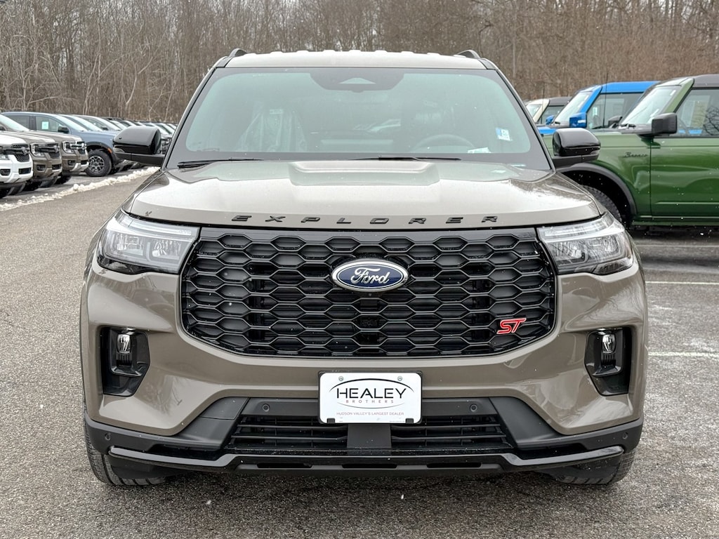 Marsh Gray 2026 Ford Explorer ST 4WD 10-Speed Automatic 3.0L EcoBoost V6 Dealer Detailed, Oil Change, Dealer Inspected, 10 Speakers, 3rd row seats: bench, 4-Wheel Disc Brakes, ABS brakes, Air Conditioning, Alloy wheels, AM/FM radio: SiriusXM with 360L, Apple CarPlay/Android Auto, Auto High-beam Headlights, Auto-dimming door mirrors, Auto-dimming Rear-View mirror, Automatic temperature control, BlueCruise Equipped (1-Year + 90-Day Plan), Brake assist, Bumpers: body-color, Compass, Delay-off headlights, Driver door bin, Driver vanity mirror, Dual front impact airbags, Dual front side impact airbags, Electronic Stability Control, Emergency communication system: 911 Assist, Equipment Group 400A Standard Package, Exterior Parking Camera Rear, Ford Connectivity Package (one-Time Purchase - 7 Years), Four wheel independent suspension, Front and 2nd Rows Floor Liners with Carper Floor Mats, Front anti-roll bar, Front Bucket Seats, Front Center Armrest, Front dual zone A/C, Front fog lights, Front License Plate Bracket, Front reading lights, Fully automatic headlights, Garage door transmitter, Heated door mirrors, Heated front seats, Heated rear seats, Heated steering wheel, Heated/Ventilated Miko Suede Captain's Chairs, Illuminated entry, Knee airbag, Leather steering wheel, Low tire pressure warning, Memory seat, Navigation System, Occupant sensing airbag, Outside temperature display, Overhead airbag, Overhead console, Panic alarm, Passenger door bin, Passenger vanity mirror, Power door mirrors, Power driver seat, Power Liftgate, Power passenger seat, Power steering, Power windows, Radio: B&O Sound System by Bang and Olufsen, Rain sensing wipers, Rear air conditioning, Rear anti-roll bar, Rear reading lights, Rear window defroster, Rear window wiper, Remote keyless entry, Security system, Speed control, Speed-sensing steering, Speed-Sensitive Wipers, Split folding rear seat, Spoiler, Sport steering wheel, Steering wheel mounted audio controls, Tachometer, Telescoping steering wheel, Tilt steering wheel, Traction control, Trip computer, Turn signal indicator mirrors, Variably intermittent wipers, Ventilated front seats, Wheels: 21" Magnetite-Painted Aluminum.