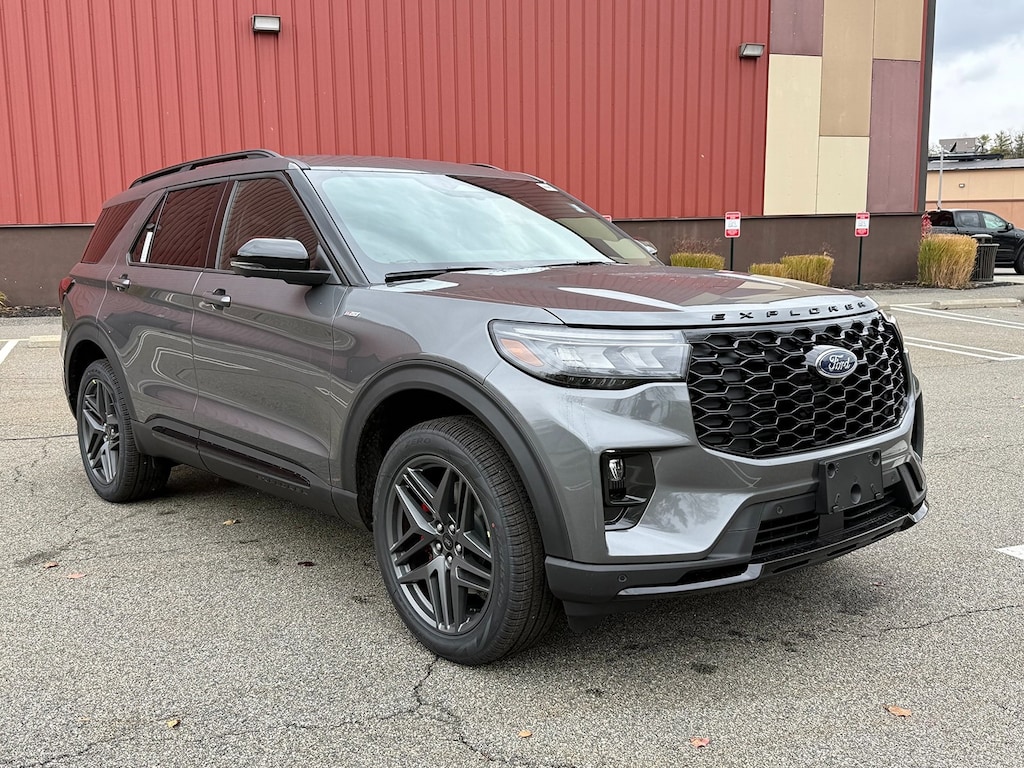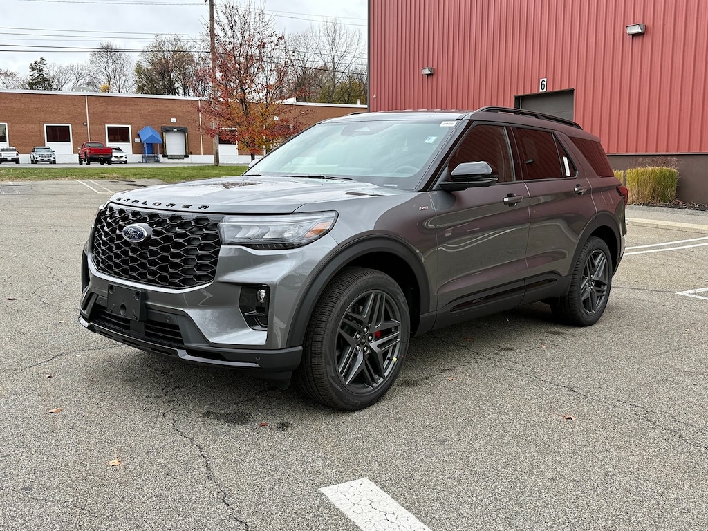 Carbonized Gray Metallic 2026 Ford Explorer ST-Line 4WD 10-Speed Automatic 2.3L EcoBoost I-4 Fresh Oil Change, 10 Speakers, 110V/150W AC Power Outlet, 2nd Row Heated Seats, 3rd row seats: bench, 4-Wheel Disc Brakes, ABS brakes, Air Conditioning, Alloy wheels, AM/FM radio: SiriusXM with 360L, Ambient Lighting, Apple CarPlay/Android Auto, Auto High-beam Headlights, Auto-Dimming Interior Rear-View Mirror, Automatic temperature control, BlueCruise (equipment + 1-Year + 90-Day Plan), BlueCruise Hardware, Brake assist, Bumpers: body-color, Compass, Delay-off headlights, Driver door bin, Driver vanity mirror, Dual front impact airbags, Dual front side impact airbags, Electronic Stability Control, Emergency communication system: 911 Assist, Equipment Group 300A Standard Package, Exterior Parking Camera Rear, Four wheel independent suspension, Front and 2nd Rows Floor Liners with Carper Floor Mats, Front anti-roll bar, Front Bucket Seats, Front Center Armrest, Front dual zone A/C, Front fog lights, Front License Plate Bracket, Front reading lights, Fully automatic headlights, Garage door transmitter, Heated door mirrors, Heated front seats, Heated steering wheel, Heated Unique Cloth Captain's Chairs, Illuminated entry, Knee airbag, Leather steering wheel, Low tire pressure warning, Manual-Folding Sideview Mirrors, Memory Driver's Seat, Navigation System, Occupant sensing airbag, Outside temperature display, Overhead airbag, Overhead console, Panic alarm, Passenger door bin, Passenger vanity mirror, Performance Brakes, Power door mirrors, Power driver seat, Power Liftgate, Power passenger seat, Power steering, Power windows, Premium Package, Radio: B&O Sound System by Bang and Olufsen, Rain-Sensing Wipers (front Only), Rear air conditioning, Rear anti-roll bar, Rear reading lights, Rear window defroster, Rear window wiper, Red Painted Performance Front and Rear Brake Calipers, Remote keyless entry, Security system, Speed control, Speed-sensing steering, Speed-Sensitive Wipers, Split folding rear seat, Spoiler, ST-Line Street Pack, Steering wheel mounted audio controls, Tachometer, Telescoping steering wheel, Tilt steering wheel, Traction control, Trip computer, Variably intermittent wipers, Wheels: 20" Ebony-Painted Machined Aluminum, Wheels: 21" Magnetite-Painted Aluminum.