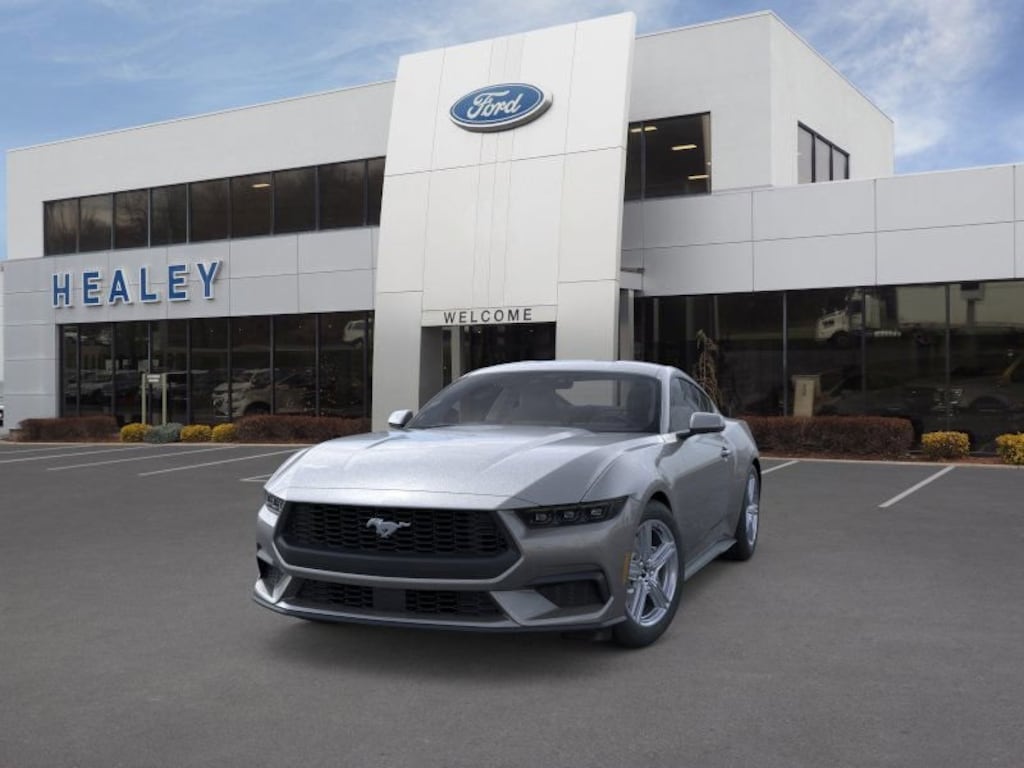 Carbonized Gray Metallic 2026 Ford Mustang EcoBoost RWD 10-Speed Automatic EcoBoost 2.3L I4 GTDi DOHC Turbocharged VCT Dealer Detailed, Oil Change, Dealer Inspected, 1st Row Carpeted Black Floor Mats, 4-Wheel Disc Brakes, ABS brakes, Air Conditioning, Alloy wheels, AM/FM Stereo, Auto High-beam Headlights, Automatic temperature control, Brake assist, Bumpers: body-color, Compass, Delay-off headlights, Driver door bin, Driver vanity mirror, Dual front impact airbags, Dual front side impact airbags, Electronic Stability Control, Emergency communication system: 911 Assist, Exterior Parking Camera Rear, Ford Connectivity Package (one-Time Purchase - 7 Years), Four wheel independent suspension, Front anti-roll bar, Front Bucket Seats, Front Center Armrest, Front dual zone A/C, Front reading lights, Fully automatic headlights, Illuminated entry, Knee airbag, Leather Shift Knob, Low tire pressure warning, Occupant sensing airbag, Outside temperature display, Overhead airbag, Overhead console, Panic alarm, Passenger door bin, Passenger vanity mirror, Power door mirrors, Power steering, Power windows, Premium Floor Liners Front and Rear (with Carpet Mats), Radio data system, Rain sensing wipers, Rear anti-roll bar, Rear Parking Sensors, Rear window defroster, Remote keyless entry, Speed control, Speed-sensing steering, Speed-Sensitive Wipers, Split folding rear seat, Sport steering wheel, Steering wheel mounted audio controls, SYNC 4, Tachometer, Telescoping steering wheel, Tilt steering wheel, Traction control, Trip computer, Variably intermittent wipers, Voltmeter, Wheels: 18" x 8" Painted Shadow Silver Cast Aluminum.