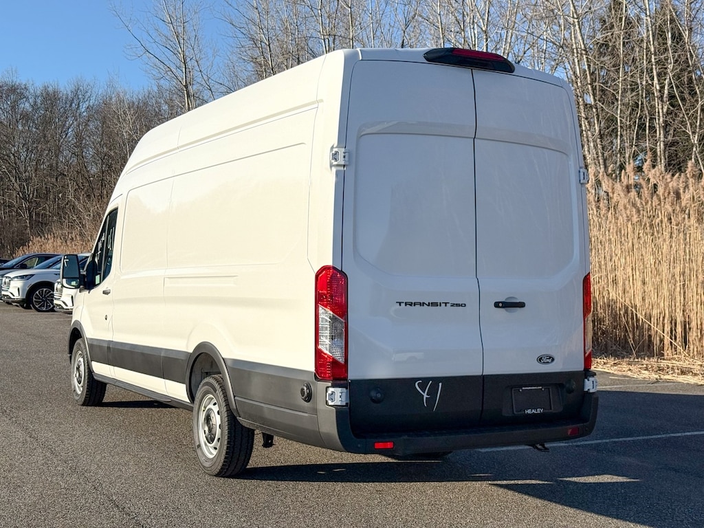 Oxford White 2026 Ford Transit-250 RWD 10-Speed Automatic with Overdrive 3.5L V6 Flex Fuel Dealer Detailed, Oil Change, Dealer Inspected, 4 Speakers, 4-Wheel Disc Brakes, 4.10 Limited-Slip Axle Ratio, ABS brakes, Air Conditioning, AM/FM radio, AM/FM Stereo, Apple CarPlay/Android Auto, Auto High-beam Headlights, Brake assist, Dark Palazzo Gray Vinyl Bucket Seats, Delay-off headlights, Driver door bin, Driver's Seat Mounted Armrest, Dual front impact airbags, Dual front side impact airbags, Electronic Stability Control, Emergency communication system: 911 Assist, Exterior Parking Camera Rear, Ford Connectivity Package (1-Year Included), Front anti-roll bar, Front Bucket Seats, Front License Plate Bracket, Front reading lights, Front wheel independent suspension, Fully automatic headlights, Illuminated entry, Low tire pressure warning, Navigation system: Connected Navigation, Occupant sensing airbag, Order Code 101A, Overhead airbag, Panic alarm, Passenger cancellable airbag, Passenger door bin, Power door mirrors, Power steering, Power windows, Remote keyless entry, Speed control, Steering wheel mounted audio controls, SYNC 4, Tachometer, Telescoping steering wheel, Tilt steering wheel, Traction control, Variably intermittent wipers, Vinyl Front Bucket Seats, Wheels: 16" Silver Steel w/Black Hubcap.