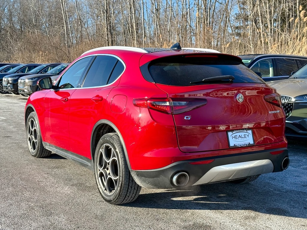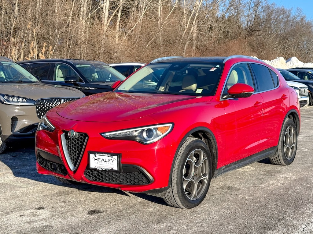 Alfa Rosso 2019 Alfa Romeo Stelvio Ti AWD 8-Speed Automatic I4 Dealer Detailed, Oil Change, Dealer Inspected, 3.73 Axle Ratio, 4-Wheel Disc Brakes, 8 Speakers, 8.8" Widescreen Color Display, ABS brakes, Air Conditioning, Alloy wheels, Aluminum Roof Rails, AM/FM radio: SiriusXM, Apple CarPlay/Android Auto, Auto-Dimming Exterior Mirrors, Auto-dimming Rear-View mirror, Automatic temperature control, Blind Spot & Cross Path Detection, Brake assist, Bright Aluminum Pedals, Bumpers: body-color, Compass, Delay-off headlights, Driver Assistance Static Package, Driver door bin, Driver vanity mirror, Dual front impact airbags, Dual front side impact airbags, Dual-Pane Sunroof, Electronic Stability Control, Four wheel independent suspension, Front anti-roll bar, Front Bucket Seats, Front Center Armrest, Front dual zone A/C, Front reading lights, Full Speed Forward Collision Warning Plus, Fully automatic headlights, Garage door transmitter, Genuine wood console insert, Genuine wood dashboard insert, Genuine wood door panel insert, Gloss Black Shark Fin Antenna, harman/kardon Premium Audio, HD Radio, Heated door mirrors, Heated front seats, Heated steering wheel, High intensity discharge headlights: Bi-Xenon, Illuminated entry, Knee airbag, Leather Dash & Upper Doors, Leather Seats, Leather Shift Knob, Light Walnut Wood Interior Trim, Low tire pressure warning, Luxury Leather Trimmed Seats, Luxury Steering Wheel, Memory seat, Occupant sensing airbag, Outside temperature display, Overhead airbag, Overhead console, Panic alarm, ParkView Rear Back-Up Camera, Passenger door bin, Passenger vanity mirror, Power 8-Way Adjustable Driver Seat, Power Adjust 8-Way Front Passenger Seat, Power door mirrors, Power driver seat, Power Liftgate, Power passenger seat, Power steering, Power windows, Quick Order Package 22X Lusso, Radio data system, Radio: AM/FM Bluetooth 8.8, Radio: AM/FM/HD Bluetooth w/Nav 8.8, Rain sensing wipers, Rear anti-roll bar, Rear audio controls, Rear fog lights, Rear reading lights, Rear seat center armrest, Rear window defroster, Rear window wiper, Remote keyless entry, Roof rack: rails only, Satin Aluminum Window Surround Molding, Security system, Speed control, Speed-sensing steering, Speed-Sensitive Wipers, Split folding rear seat, Spoiler, Sport steering wheel, Steering wheel mounted audio controls, Tachometer, Telescoping steering wheel, Tilt steering wheel, Traction control, Trip computer, Turn signal indicator mirrors, Variably intermittent wipers, Wheels: 19" x 8.0" 10-Spoke Aluminum, Wheels: 19" x 8.0" Sport 5-Hole Aluminum, Wheels: 19" x 8.0" Y-Spoke Aluminum.