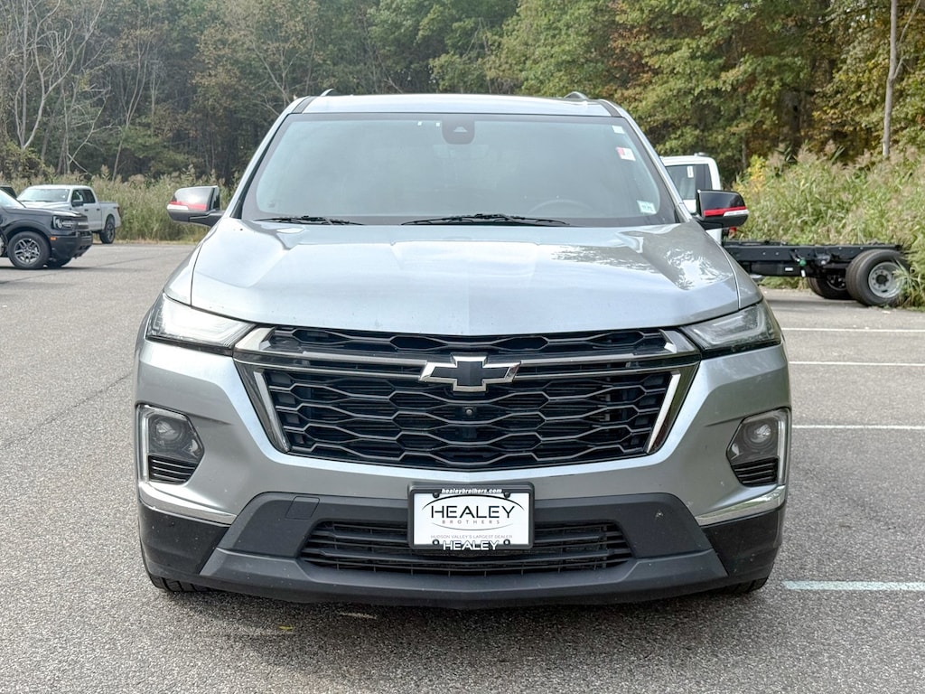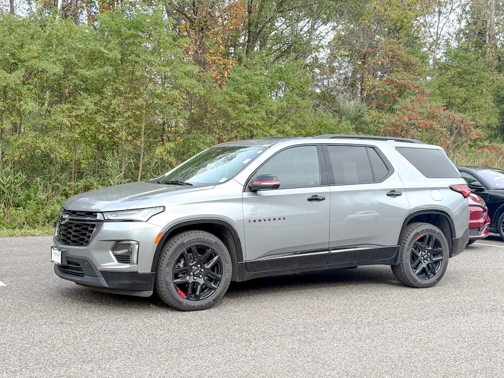 Sterling Gray Metallic 2023 Chevrolet Traverse Premier AWD 9-Speed Automatic 3.6L V6 SIDI VVT Dealer Detailed, Oil Change, Dealer Inspected, 10 Speakers, 1st & 2nd Row All-Weather Floor Liner (LPO), 3.49 Axle Ratio, 3rd Row All-Weather Floor Liner (LPO), 3rd row seats: split-bench, 4-Wheel Disc Brakes, 6-Way Power Front Passenger Seat, 8-Way Power Driver Seat Adjuster, ABS brakes, Air Conditioning, Alloy wheels, AM/FM radio: SiriusXM with 360L, Apple CarPlay/Android Auto, Auto High-beam Headlights, Auto-dimming door mirrors, Auto-dimming Rear-View mirror, Automatic temperature control, Black Bowtie, Black Door Handles, Black Roof Rails, Bose Premium 10-Speaker Audio System Feature, Brake assist, Bumpers: body-color, Compass, Delay-off headlights, Driver door bin, Driver vanity mirror, Dual front impact airbags, Dual front side impact airbags, Dual SkyScape 2-Panel Power Sunroof, Electronic Stability Control, Emergency communication system, Exterior Parking Camera Rear, Floor Liner Package (LPO), Four wheel independent suspension, Front anti-roll bar, Front Bucket Seats, Front Center Armrest, Front dual zone A/C, Front License Plate Bracket Mounting Package, Front Passenger 2-Way Power Lumbar, Front reading lights, Fully automatic headlights, Garage door transmitter, Heated 2nd Row Outboard Position Seats, Heated door mirrors, Heated Driver & Front Passenger Seats, Heated front seats, Heated rear seats, Heated steering wheel, Illuminated entry, Integrated Cargo Liner (LPO), Leather steering wheel, Low tire pressure warning, Memory seat, Navigation System, Occupant sensing airbag, Ornamentation, Outside temperature display, Overhead airbag, Overhead console, Panic alarm, Passenger door bin, Passenger vanity mirror, Perforated Leather-Appointed Seat Trim, Power door mirrors, Power Driver Lumbar Control, Power driver seat, Power Liftgate, Power passenger seat, Power steering, Power windows, Preferred Equipment Group 1LZ, Premium audio system: Chevrolet Infotainment 3 Plus, Radio data system, Radio: Chevrolet Infotainment 3 Plus System w/Navi, Rear air conditioning, Rear anti-roll bar, Rear reading lights, Rear window defroster, Rear window wiper, Redline Accent Decals (LPO), Redline Edition, Remote keyless entry, Security system, SiriusXM w/360L, Speed control, Speed-sensing steering, Spoiler, Steering wheel memory, Steering wheel mounted audio controls, Tachometer, Telescoping steering wheel, Tilt steering wheel, Traction control, Trip computer, Turn signal indicator mirrors, Variably intermittent wipers, Ventilated Driver & Front Passenger Seats, Ventilated front seats, Voltmeter, Wheels: 20" Gloss Black Painted Alum w/Red Stripes, Wheels: 20" Metallic Machined-Face Aluminum.