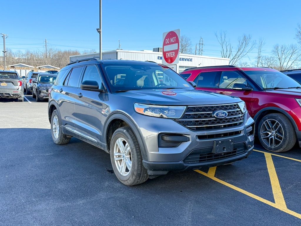 Certified. Carbonized Gray Metallic 2023 Ford Explorer XLT 4WD 10-Speed Automatic 2.3L EcoBoost I-4 Dealer Detailed, Oil Change, Dealer Inspected, 2nd Row 35/30/35 Bench w/E-Z Entry & Armrest, 3.58 Non-Limited-Slip Rear Axle Ratio, 3rd row seats: bench, 4-Wheel Disc Brakes, 4G LTE Wi-Fi Hotspot Credit, 6 Speakers, ABS brakes, Air Conditioning, Alloy wheels, AM/FM radio: SiriusXM, AM/FM Stereo, Auto High-beam Headlights, Automatic temperature control, Brake assist, Bumpers: body-color, Compass, Delay-off headlights, Driver door bin, Driver vanity mirror, Dual front impact airbags, Dual front side impact airbags, Electronic Stability Control, Emergency communication system: SYNC 3 911 Assist, Equipment Group 200A, Exterior Parking Camera Rear, FordPass Connect, Four wheel independent suspension, Front & Second Row Floor Liners (16B), Front anti-roll bar, Front Bucket Seats, Front Center Armrest, Front dual zone A/C, Front reading lights, Fully automatic headlights, Heated door mirrors, Heated front seats, Heated Unique Cloth Captain's Chairs, Illuminated entry, Knee airbag, Leather steering wheel, Low tire pressure warning, Occupant sensing airbag, Outside temperature display, Overhead airbag, Overhead console, Panic alarm, Passenger door bin, Passenger vanity mirror, Power door mirrors, Power driver seat, Power Liftgate, Power passenger seat, Power steering, Power windows, Rear air conditioning, Rear anti-roll bar, Rear Auxiliary Controls Credit, Rear reading lights, Rear window defroster, Rear window wiper, Remote keyless entry, Roof rack: rails only, Security system, Speed control, Speed-sensing steering, Speed-Sensitive Wipers, Split folding rear seat, Spoiler, Steering wheel mounted audio controls, SYNC 3 Communications & Entertainment System, SYNC 3/Apple CarPlay/Android Auto, Tachometer, Telescoping steering wheel, Tilt steering wheel, Traction control, Trip computer, Variably intermittent wipers, Wheels: 18" 5-Spoke Silver-Painted Aluminum.
