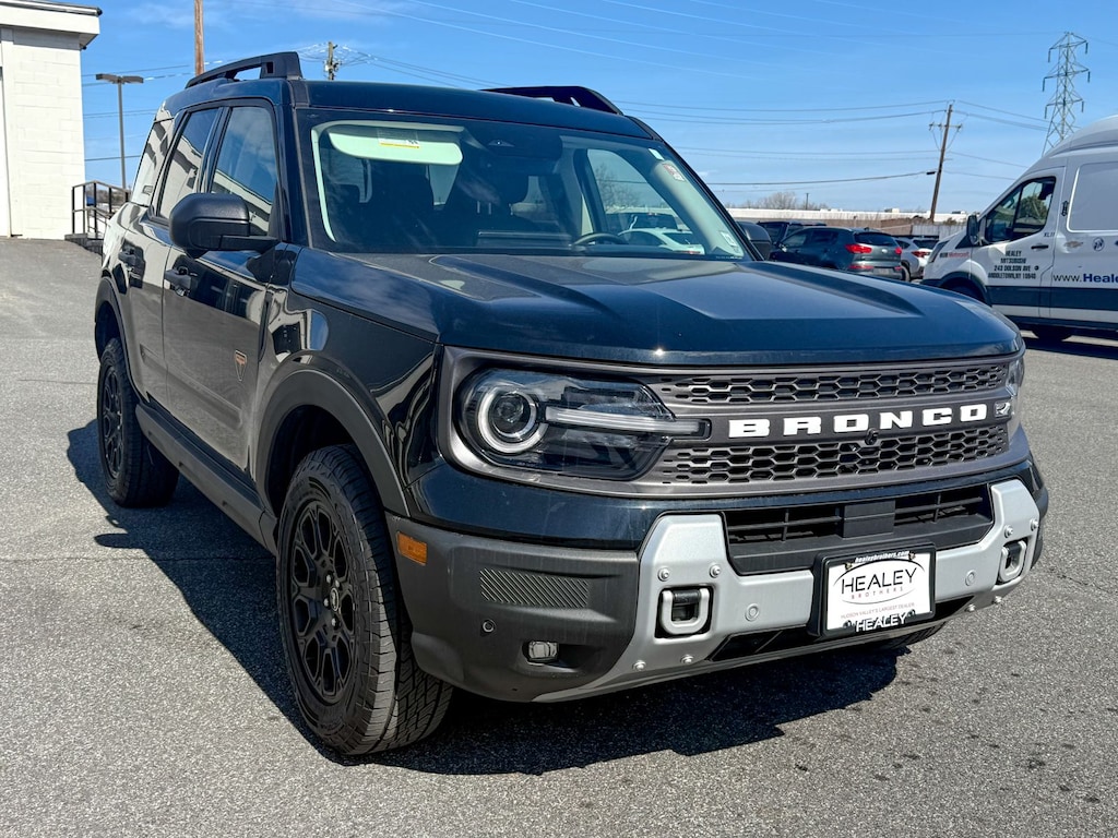 Certified. Shadow Black 2025 Ford Bronco Sport Badlands 4WD 8-Speed Automatic EcoBoost 2.0L I4 GTDi DOHC Turbocharged VCT Fresh Oil Change, 4-Wheel Disc Brakes, 6 Speakers, ABS brakes, Air Conditioning, Alloy wheels, AM/FM radio: SiriusXM, AM/FM Stereo, Auto High-beam Headlights, Auto-dimming Rear-View mirror, Automatic temperature control, Brake assist, Compass, Delay-off headlights, Driver door bin, Driver vanity mirror, Dual front impact airbags, Dual front side impact airbags, Electronic Stability Control, Emergency communication system: SYNC 4 911 Assist, Equipment Group 400A, Four wheel independent suspension, Front anti-roll bar, Front Bucket Seats, Front Center Armrest, Front fog lights, Front License Plate Bracket, Front reading lights, Fully automatic headlights, Garage door transmitter, Heated door mirrors, Heated front seats, Heated steering wheel, Illuminated entry, Knee airbag, Leather Trimmed Front Bucket Seats, Low tire pressure warning, Memory seat, Occupant sensing airbag, Outside temperature display, Overhead airbag, Overhead console, Panic alarm, Passenger door bin, Passenger vanity mirror, Power door mirrors, Power driver seat, Power passenger seat, Power steering, Power windows, Radio data system, Rear anti-roll bar, Rear reading lights, Rear seat center armrest, Rear window defroster, Rear window wiper, Remote keyless entry, Security system, SiriusXM, Speed control, Speed-sensing steering, Speed-Sensitive Wipers, Split folding rear seat, Steering wheel mounted audio controls, SYNC 4 w/Enhanced Voice Recognition, Tachometer, Telescoping steering wheel, Tilt steering wheel, Traction control, Trip computer, Variably intermittent wipers, Wheels: 17" Matte Black-Painted Aluminum.
