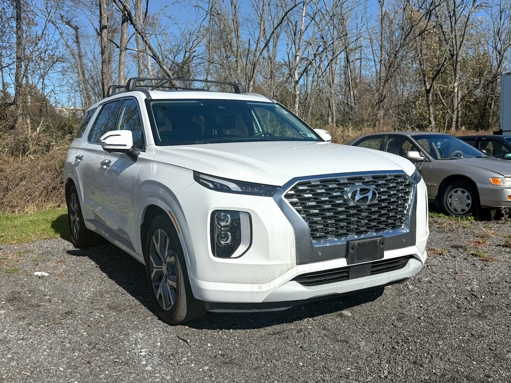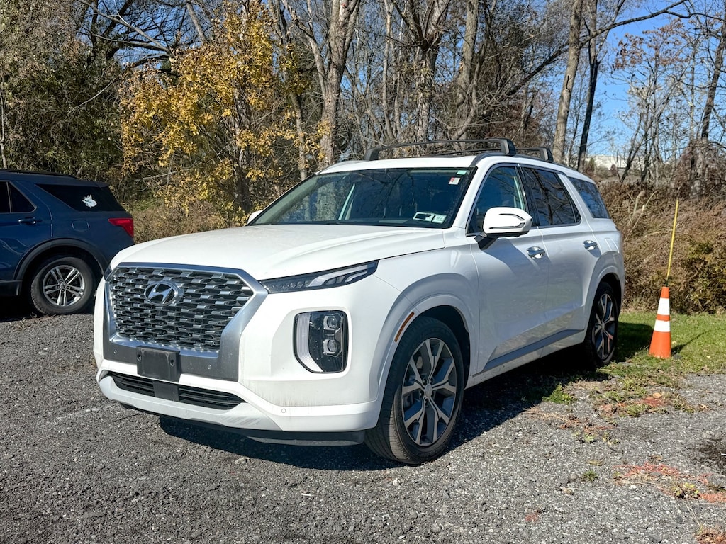 Hyper White 2021 Hyundai Palisade Limited AWD 8-Speed Automatic with SHIFTRONIC V6 Dealer Detailed, Oil Change, Dealer Inspected, 12 Speakers, 3.648 Axle Ratio, 3rd row seats: split-bench, 4-Wheel Disc Brakes, ABS brakes, Air Conditioning, Alloy wheels, AM/FM radio: SiriusXM, Apple CarPlay & Android Auto, Auto High-beam Headlights, Auto-dimming Rear-View mirror, Auto-leveling suspension, Automatic temperature control, Brake assist, Bumper Applique, Bumpers: body-color, Carpeted Floor Mats, Compass, Delay-off headlights, Driver door bin, Driver vanity mirror, Dual front impact airbags, Dual front side impact airbags, Electronic Stability Control, Emergency communication system: Blue Link Connected Car Service (3-year complimentary subscription), Four wheel independent suspension, Front anti-roll bar, Front Bucket Seats, Front Center Armrest, Front dual zone A/C, Front reading lights, Fully automatic headlights, Garage door transmitter: HomeLink, harman/kardon® Speakers, Heads-Up Display, Heated & Ventilated Front Bucket Seats, Heated door mirrors, Heated front seats, Heated rear seats, Heated steering wheel, Illuminated entry, Knee airbag, Low tire pressure warning, Memory seat, Navigation System, Occupant sensing airbag, Option Group 01, Outside temperature display, Overhead airbag, Overhead console, Panic alarm, Passenger door bin, Passenger vanity mirror, Power door mirrors, Power driver seat, Power Liftgate, Power moonroof, Power passenger seat, Power steering, Power windows, Premium Nappa Leather Seat Trim, Radio data system, Radio: AM/FM/MP3 Premium Audio System, Rain sensing wipers, Rear air conditioning, Rear anti-roll bar, Rear reading lights, Rear window defroster, Rear window wiper, Reclining 3rd row seat, Remote keyless entry, Security system, Speed control, Speed-sensing steering, Split folding rear seat, Spoiler, Steering wheel mounted audio controls, Tachometer, Telescoping steering wheel, Tilt steering wheel, Traction control, Trip computer, Turn signal indicator mirrors, Variably intermittent wipers, Ventilated front seats, Ventilated rear seats, Wheels: 20" x 7.5J Split 5-Spoke Machined Alloy.